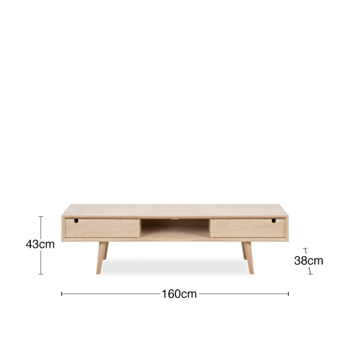 A subtle Scandinavian design developed with clean lines, a minimalistic look, and white pigmented oak to create a range of furniture that appeals to our sense of tradition while maintaining a contemporary edge. With two spacious drawers with integrated handles on either end and a deep alcove in the middle, there is ample amount of room for any living room electronics, cables, and clutter. The Century TV Stand will suit any living room style.