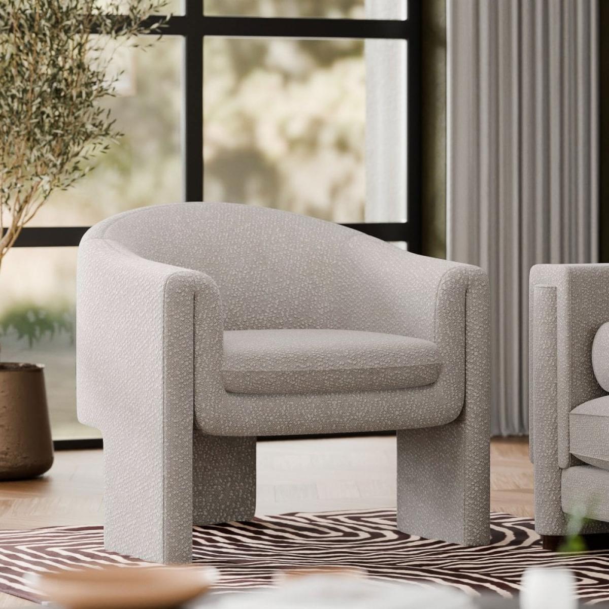 I love this find for its modern yet cosy vibe-perfect for adding texture and a relaxed feel to a variety of interiors. The speckled stone boucle fabric is especially practical, thanks to its durability and subtle visual interest. It works really well in contemporary, Scandi, or even eclectic spaces, offering a stylish statement without taking over. For styling tips, consider pairing it with neutral-toned soft furnishings to let the fabric shine, or add a pop of colour with cushions for a personalised touch. Its compact size makes it versatile for smaller living rooms or cosy corners, making it a smart choice for those wanting comfort and style on a budget.