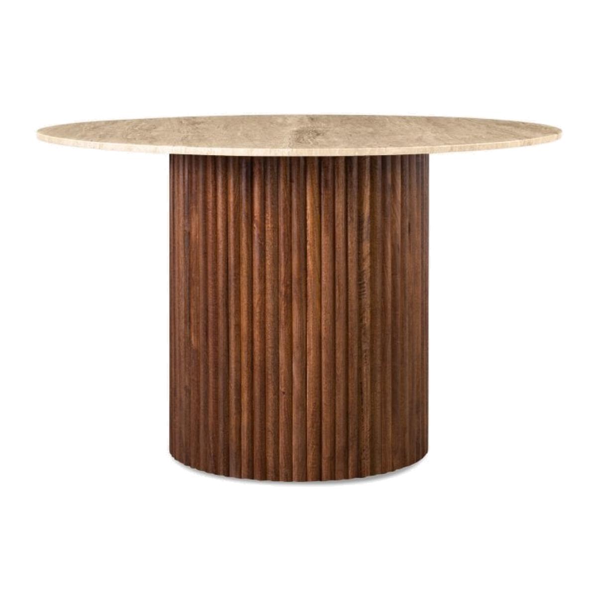 £50 Off Medby 4 Seat Round Dining Table, Dark Mango Wood & Travertine