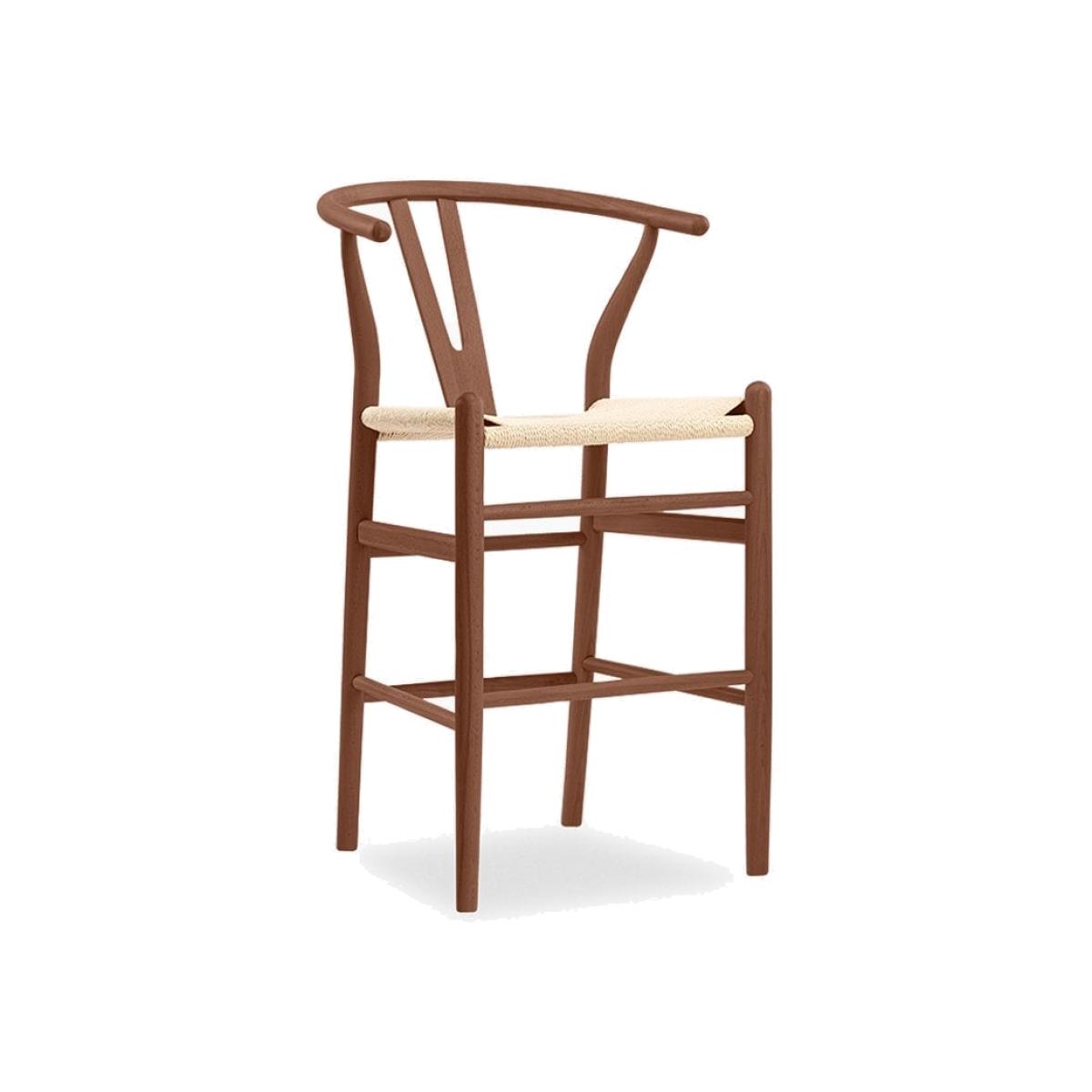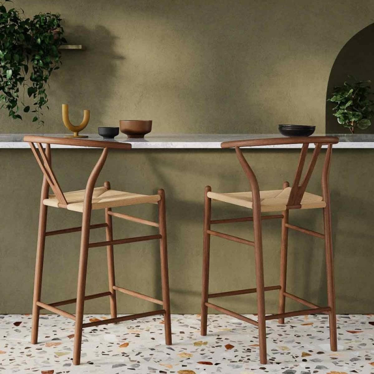 The Wish Kitchen Bar Stool; perfect for any breakfast bar or kitchen. This Scandic design is practical, contemporary, and stylish, with natural weave seat and light walnut-stained wooden frame. The curved 'Y' shaped back in beech wood and paper cord natural seat showcases Scandi style without compromising comfort. View The Wish Range