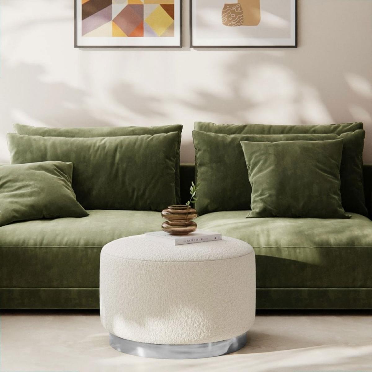 Add an elegant twist to your living space with our ivory white boucle Marie Footstool. This low stool adds a touch of opulence with its circular chrome metal band and luxurious boucle upholstery. Pop it in front of your sofa or in your bedroom to make a chic statement in your contemporary space. View The Marie Range