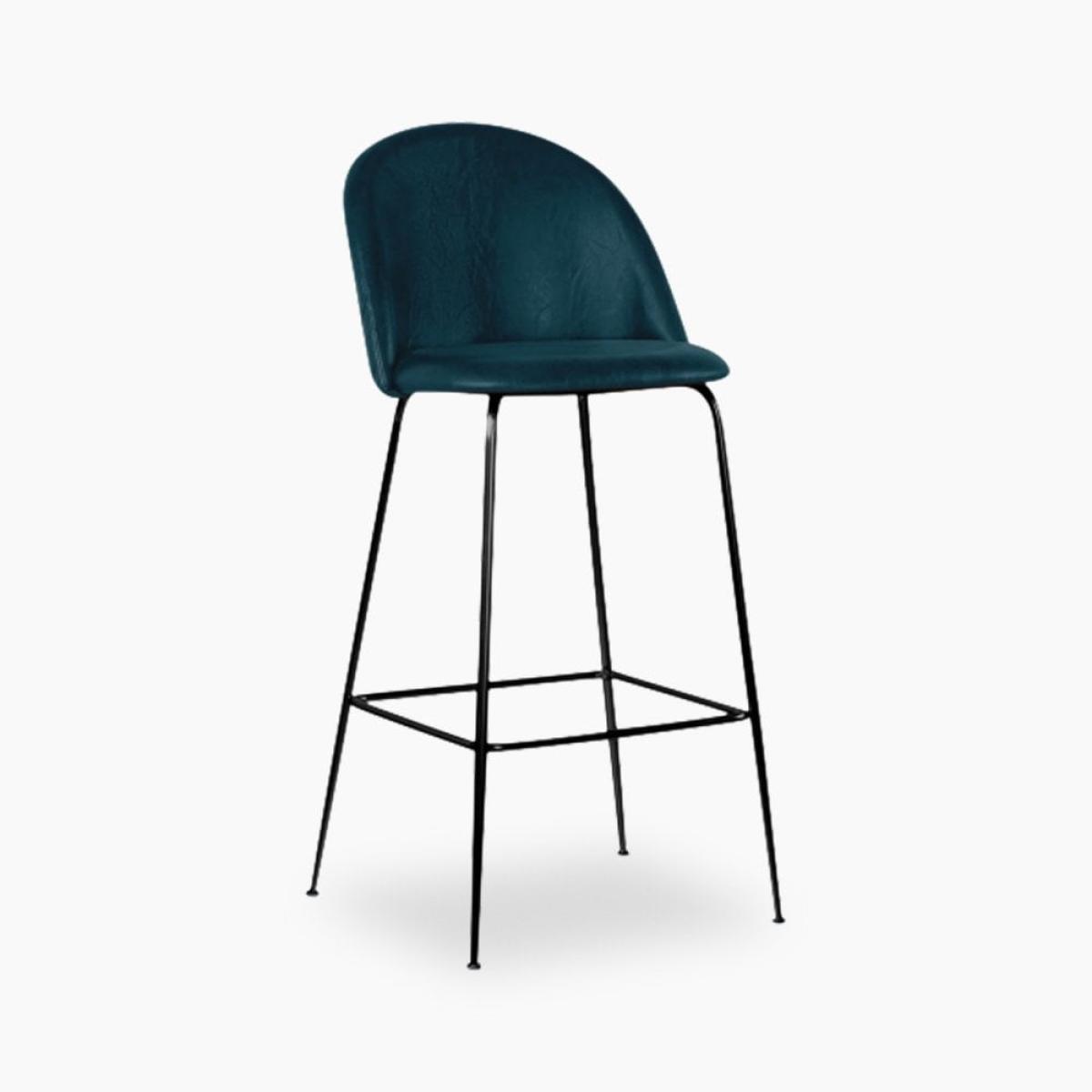 Upholstered in faux leather, the Heather teal bar stool introduces a industrial approach to lounge furniture. Featuring a curved back and quilted detailing that hugs the contours of the body, and finished with sleek metal legs - with a built-in footrest. View The Heather Range