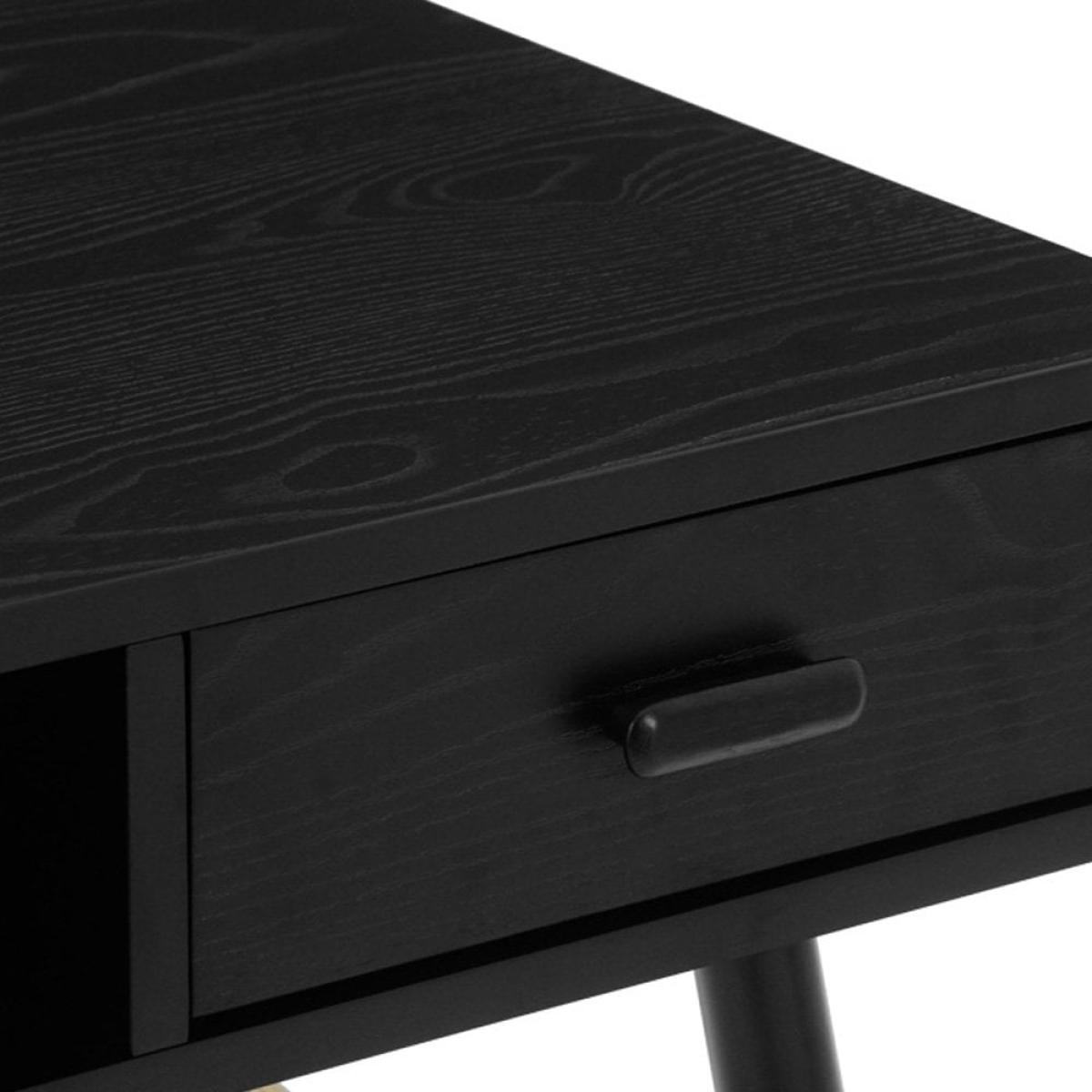 I love this deal on the Holbrook desk, especially thanks to its sleek black finish combined with brass accents, which really elevate its look. It works well in contemporary, minimalist, or even retro-inspired interiors, thanks to its clean lines and striking contrast. For a practical styling tip, keep the surface clear with just essential items, and consider adding warm-toned organisational trays or a small desk plant to soften the black and brass combo. It’s versatile enough to serve as a home office desk or a statement piece in a hallway or dressing area, making it a stylish yet functional addition.