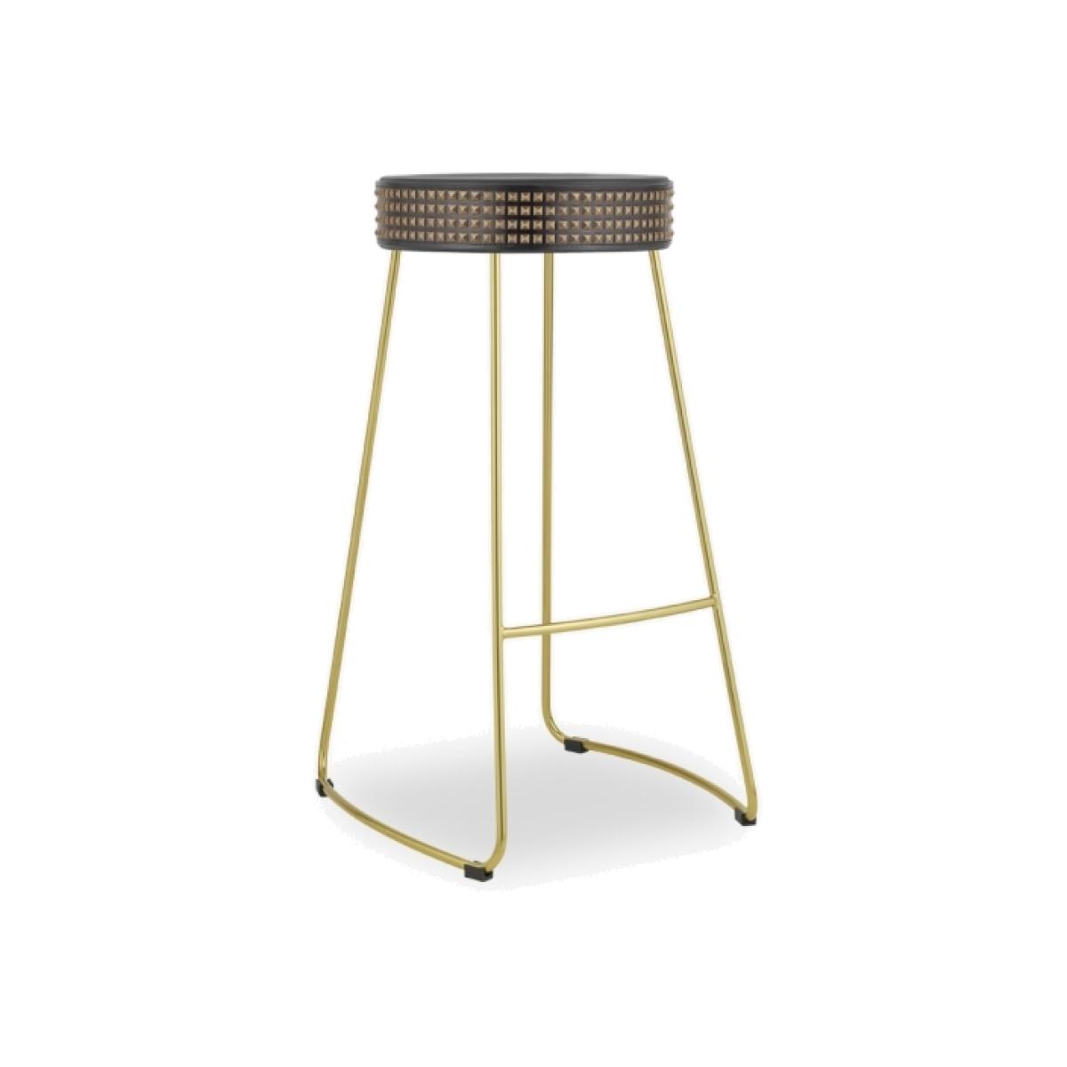 Meet the industrial-inspired Victoria bar stool; a modern stool that oozes contemporary design appeal. Featuring; a faux leather black seat with gold studs that is specially moulded for comfort, combined with durable steel metal legs in a classic industrial outline. Place in your kitchen around your breakfast island or in a bar setting for a chic industrial design feel. It's the injection of contemporary design style you've been looking for! View The Victoria Range Seconds Clearance Stock - Please note this product has been reduced in price as it cannot be sold as new. It might be a unwanted customer return or have visible marks, dents, scratches and/or faded colour but overall still in structurally good condition. Seat Material:Faux Leather Leg Material: Steel Assembly:Partial Assembly Required Care:Wipe with a dry cloth Dimensions: Total Size: H 80 x W 42 x D 46cm. Buy your Victoria Metal Bar Stool, Black Gold Stud Seat Leg Colour: Brass from a wide range of Furniture
