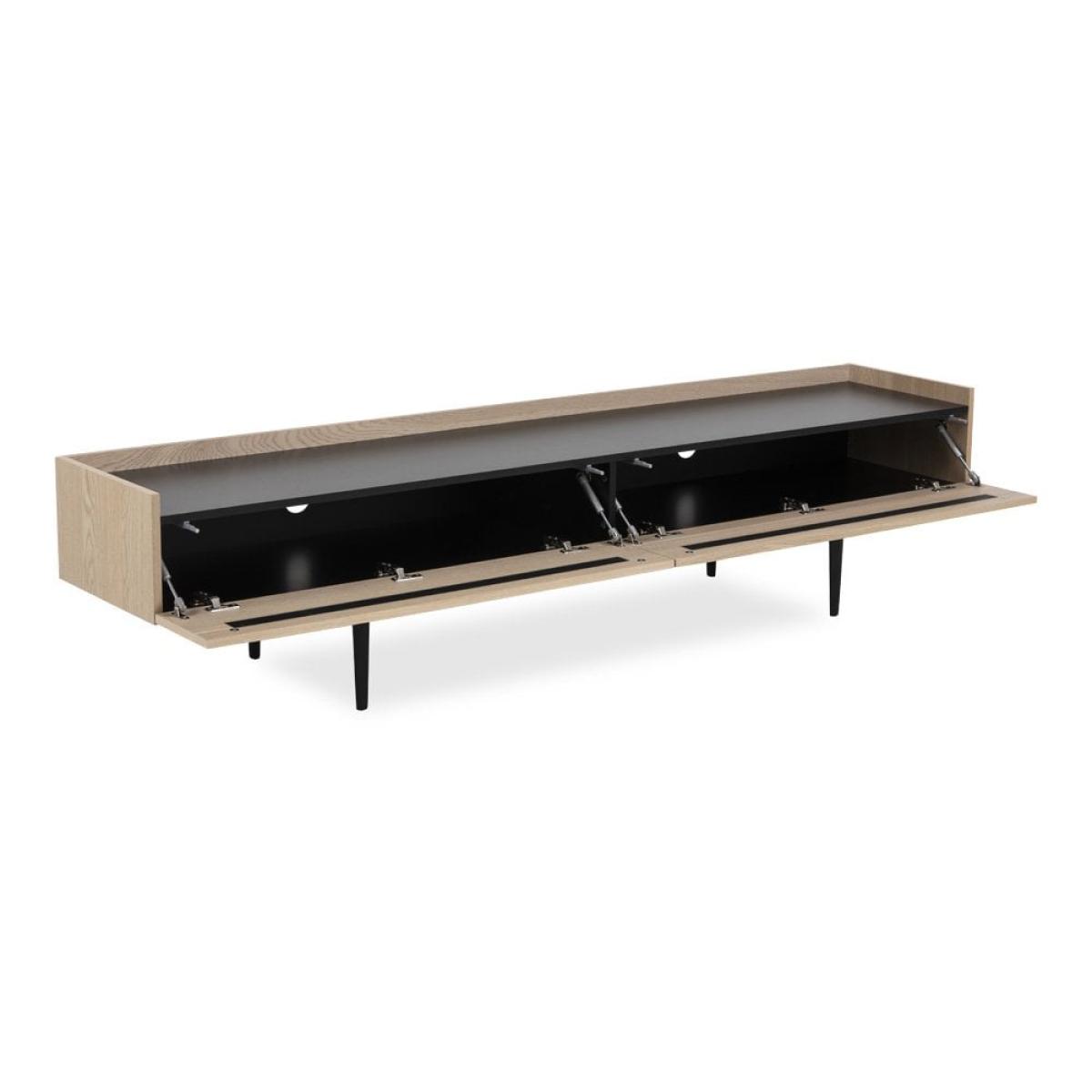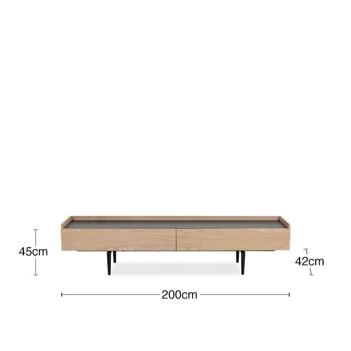 The Connect TV Stand uses contrasting colours for a modern and elegant look. The frame in white pigmented, lacquered oak veneer and black wood finish top combine for that airy hygge Nordic feel. Behind the two doors, you have plenty of storage space for your entertainment devices, which leaves the top panel free for your TV and whatever else you like to keep on show.