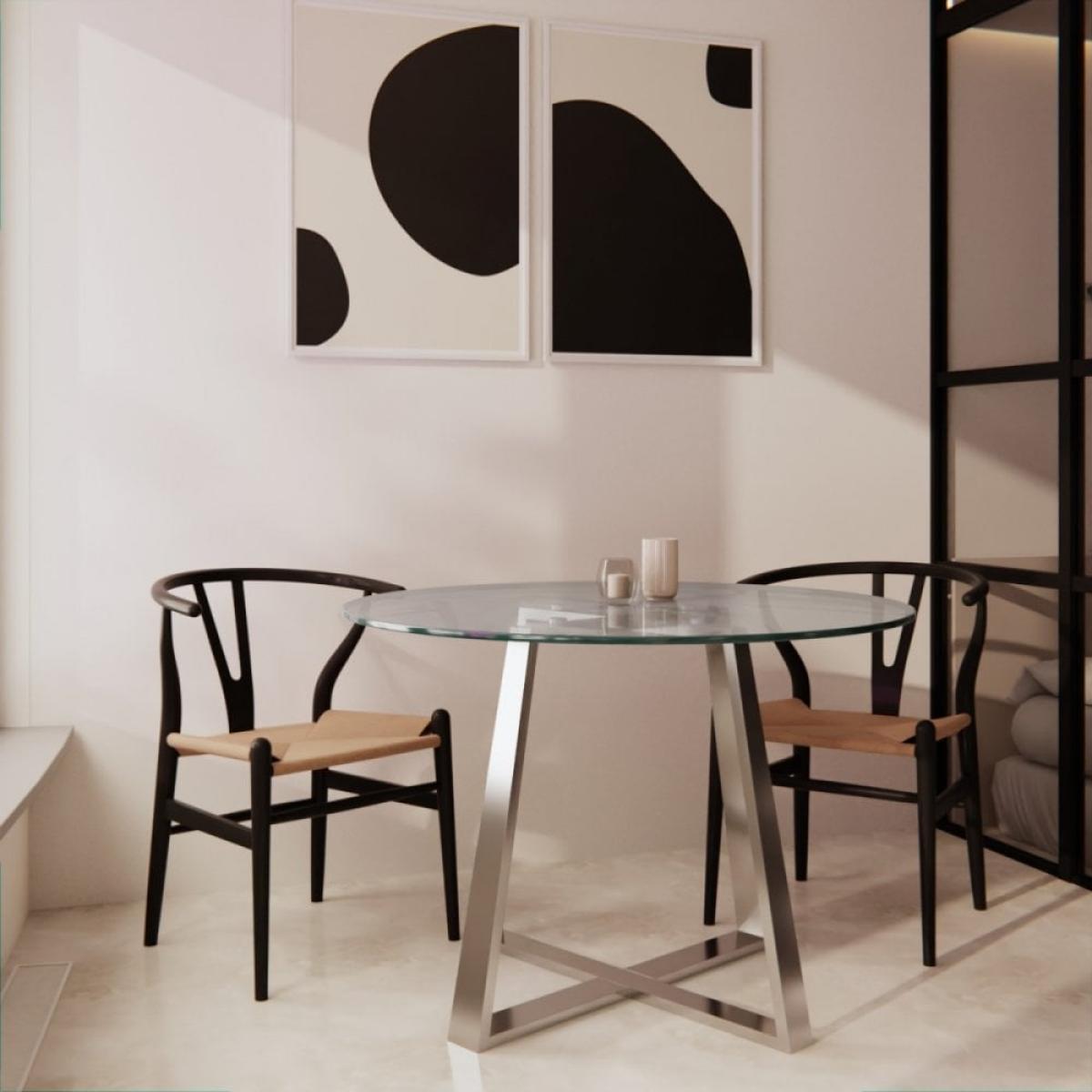 This round dining table is a sleek, versatile choice that works particularly well in contemporary or minimalist interiors due to its brushed metal base and glass top. I love how it combines practicality with modern style-it's perfect for smaller dining spaces while still feeling open and light. To style it, consider pairing with neutral or monochrome chairs for a clean look, or add a pop of colour through placemats and accessories. For a more layered feel, incorporate textured textiles like a runner or decorative centrepiece, which will enhance the glass surface without overwhelming its understated elegance. Overall, it’s a practical yet stylish option that can adapt to different interior styles with ease.