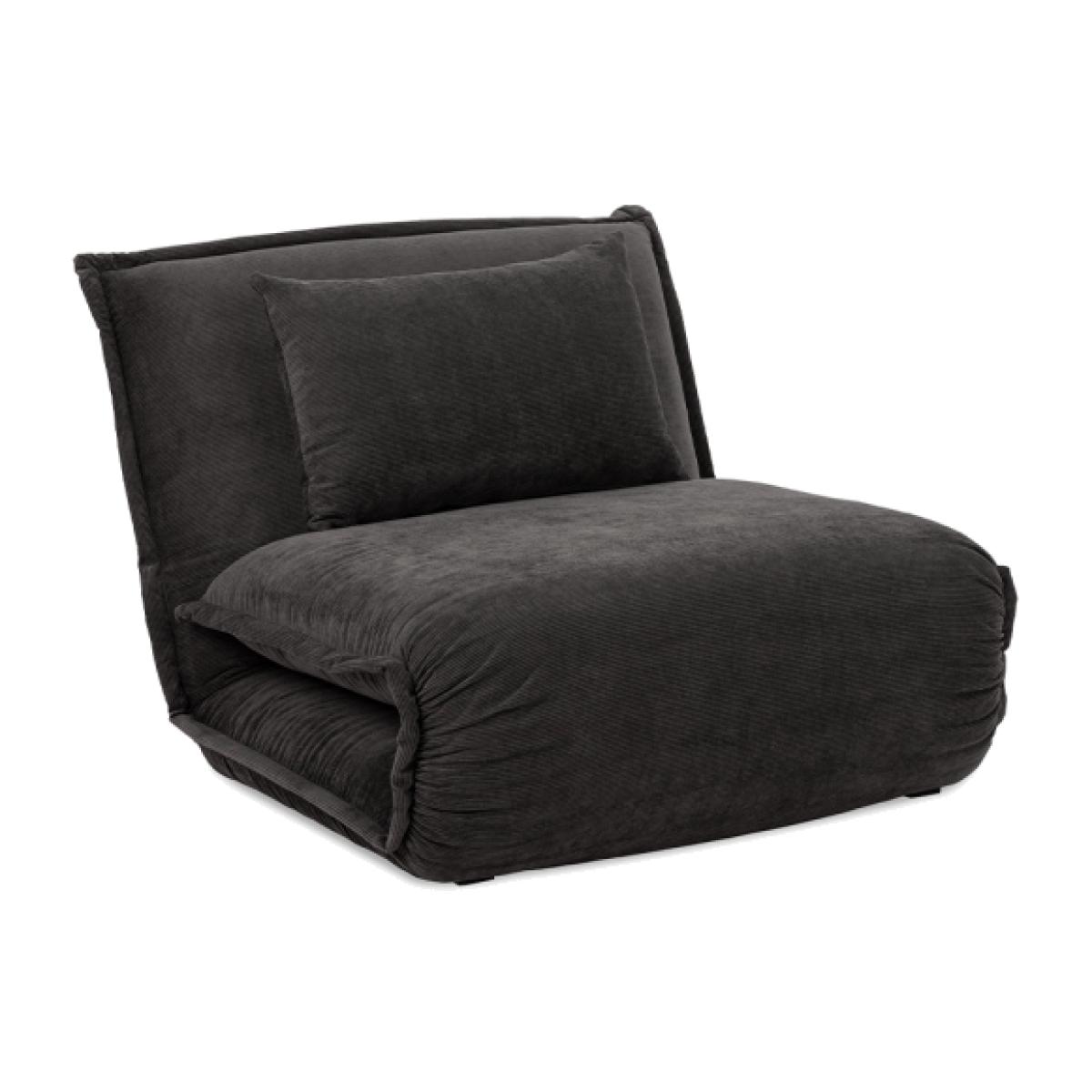Go from day to night in seconds with the Halle Grey Chair Bed. For those last minute sleepovers, this is a simple space-saving solution to utilise your living room or home study. With an internal metal frame and an easy click-clack function, folding out flat into a comfy single bed, we love the blend between style and functionality. In a premium anthracite k grey corduroy, the Halle Chair Sofa Bed is sturdy as well as stylish, with one pillow included. Sofa Material: Fabric Frame Material: Metal Filling Composition: Polyurethane Foam Specification: Chip Foam Blocks Suspension:Rubber Band Assembly: No Assembly Required Warranty: 2 Years Structural Warranty Care: Professional Cleaning Advised Dimensions: Total Size:H 73 x W 93 x D 83cm Seat Height: 38cm Internal Seat: W 93 x D 65cm Backrest Height: 73cm Weight: 19.5kg Packing Dimensions: 90 x 132 x 34cm Bed Dimensions Total Size: H 18 x W 93 x D 214cm. Buy your Halle Clic Clac Chair Be...