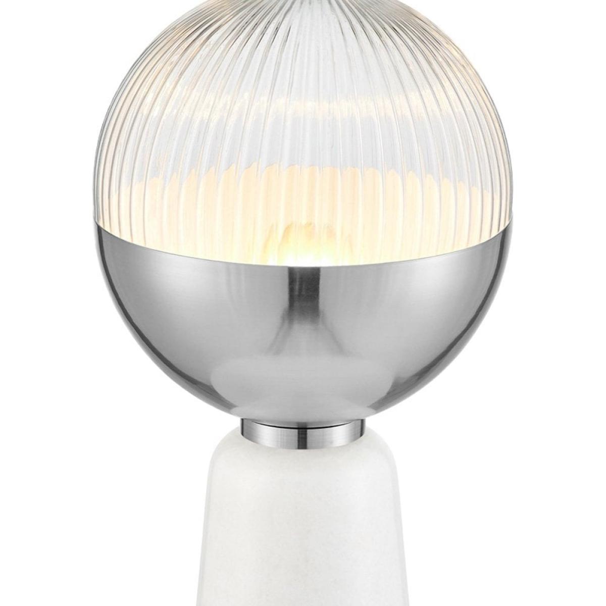 I love how this table lamp's sleek combination of white marble and chrome gives it a modern yet timeless appeal. It works really well in contemporary or minimalist interiors, bringing a touch of elegance without feeling overly formal. Practical styling tips include pairing it with neutral or monochrome colour schemes for a chic look, or placing it on a bedside table or console to add a hint of luxe. Due to its versatile materials and clean lines, it can also complement more eclectic spaces when styled alongside warm textures or greenery. Keep the bulb simple and warm to enhance the soft, inviting glow and showcase the beautiful materials.