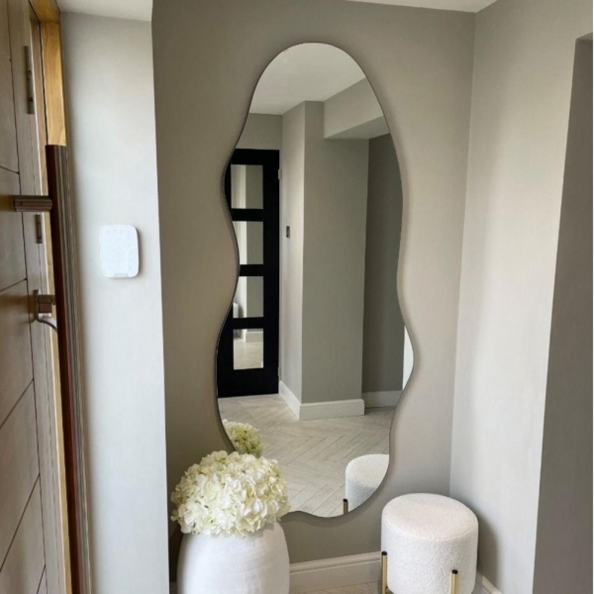 I’m a fan of this frameless “pond” mirror because its gentle curves bring a modern, sculptural touch without overwhelming the space. It works particularly well in minimalist or Scandi-inspired interiors, where neutral walls and simple furnishings let its shape become a subtle focal point. In a hallway it can open up a narrow corridor, while in a bedroom or dressing area it gives a full-length reflection without the bulk of a frame. For styling, lean it against the wall rather than fixing it flush - that slight gap lets light bounce around and emphasises its silhouette. Pair it with a low console or a slimline bench topped with a vase of fresh blooms, and keep any artwork nearby minimal so the mirror stays the star. If you’re matching metallic accents, opt for brushed brass or matte black to complement its contemporary feel.