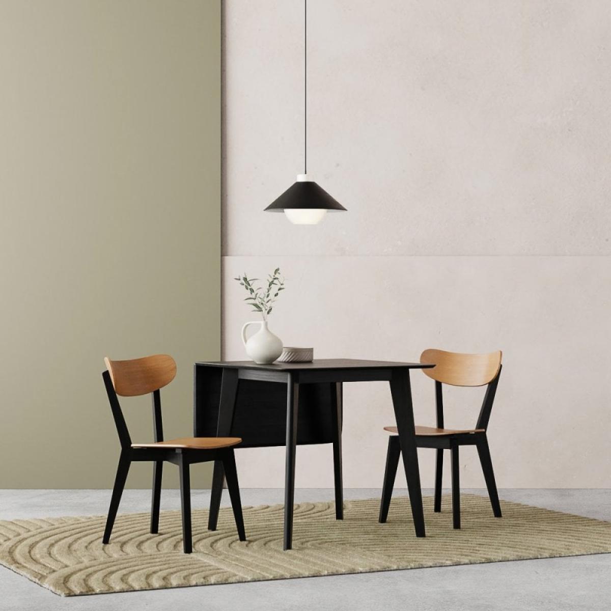 Mid-Century Design for dining spaces, the Roxby Dining Set in Black & Oak features 2 chairs and a wooden dining table with an extendable leaf, ideal for utilising smaller dining spaces. Specially curated by the Cult Team for our Cult Essentials Range, the Roxby 4-Seater Dining Set is an exceptional value, taking the hassle out of buying furniture sets for style delivered straight to your door.