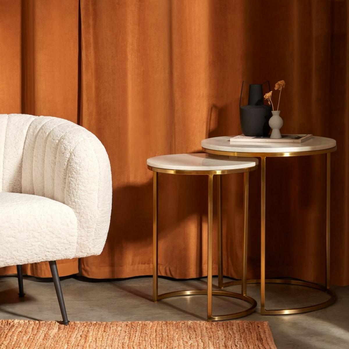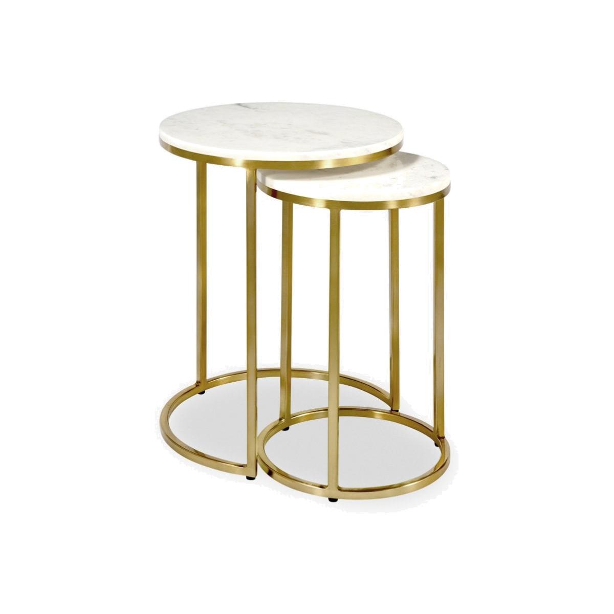 £90 Off Set of 2 Nesting Side Tables, White Marble & Brass
