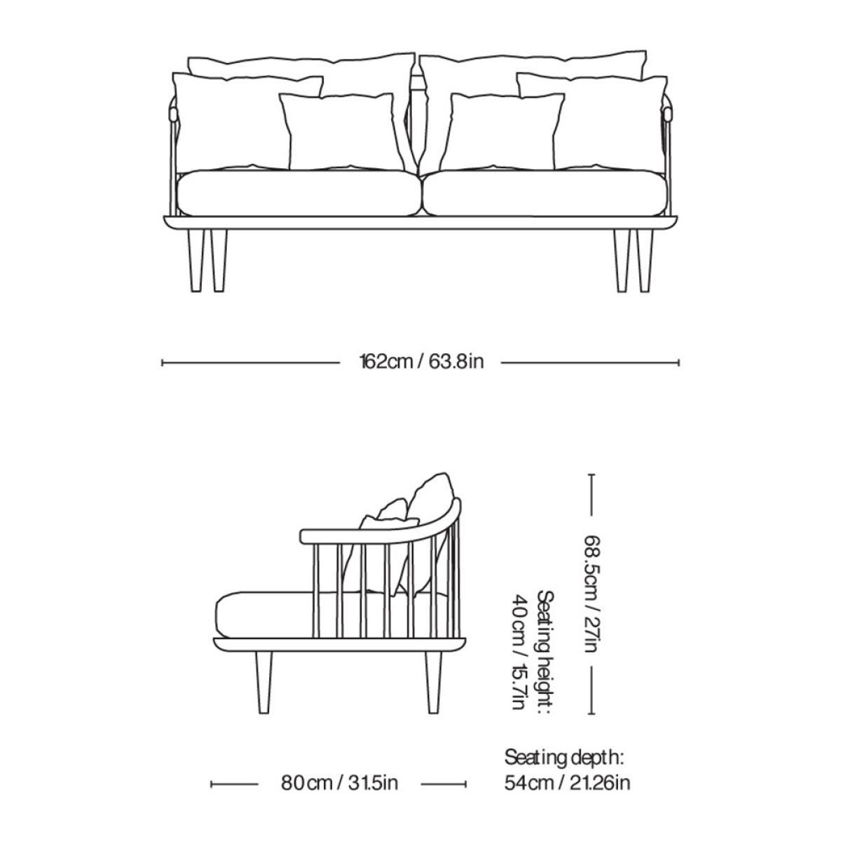 Bring the cool Nordic stylings of Space Copenhagen’s Fly series to your home with this two seater sofa. The slatted wood backrest, organic shapes and solid craftsmanship pay homage to the classic Nordic aesthetic. Optimised for comfort, the roomy Fly sofa features loose cushions for the back that can be rearranged. Hand built, the solid oak and oak veneer frame is available with a choice of Hot Madison or Chelsea Sage coloured fabric upholstery.