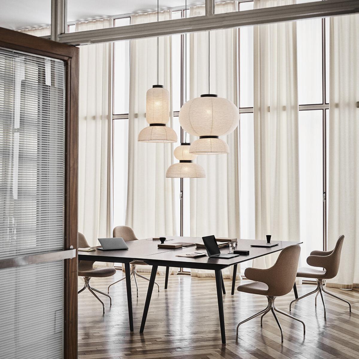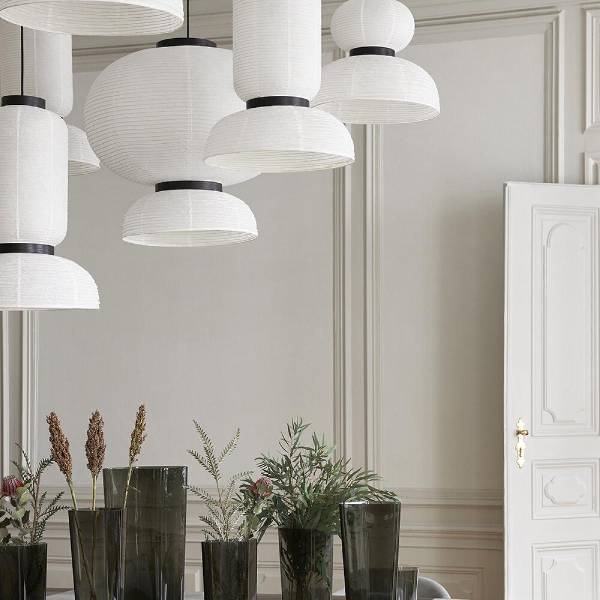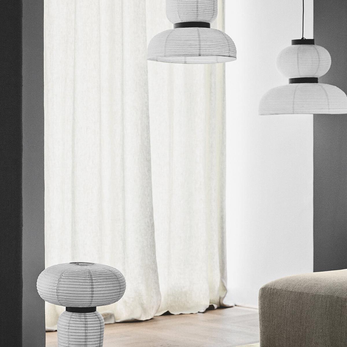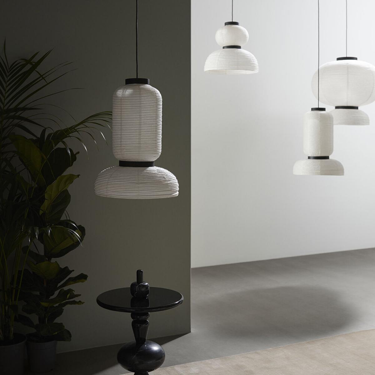 Jaime Hayon’s Formakami JH3 pendant light is a demonstration of East meets West style. A playful tweak of a traditional Asian lantern, it has been given a contemporary update. Hand crafted with ivory rice paper, the shade is complemented by black stained oak accents and black fabric cord.