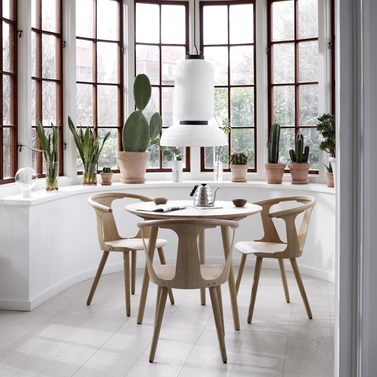 I love the In Between chair in light-oiled oak for its clean, sculptural form that still feels warm and inviting. Its soft curves and slender legs suit both a pared-back Scandi kitchen and a contemporary dining room; the pale oak finish works beautifully with muted linens, chalky paints or monochrome accents. For a cohesive look, pair it with a simple white or black table, add a slim linen seat pad for comfort and layer a low-pile jute or wool rug beneath to anchor the setting.