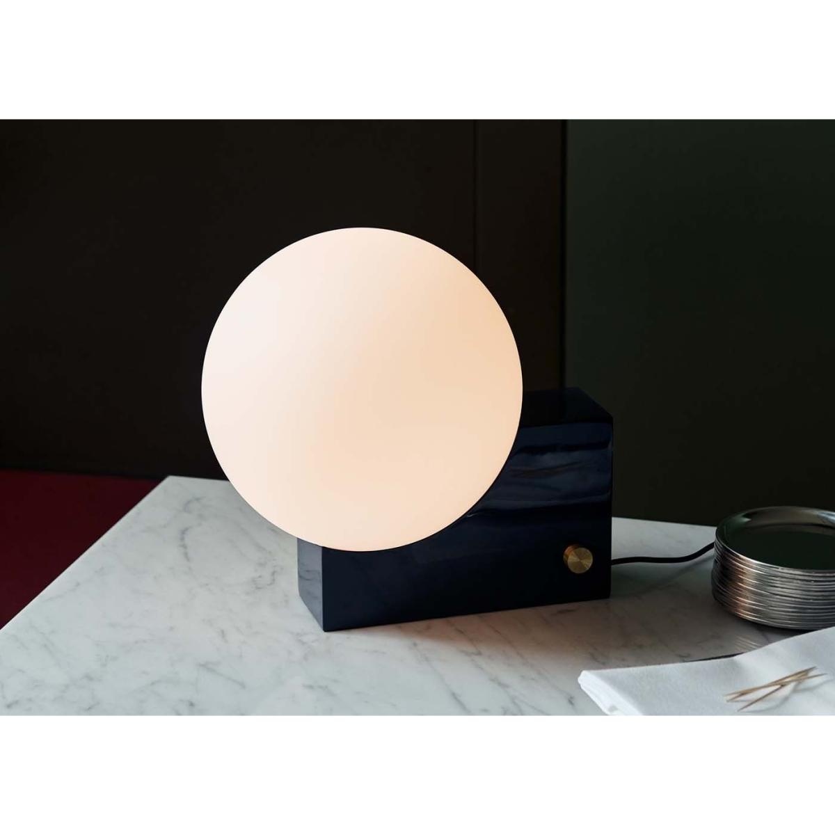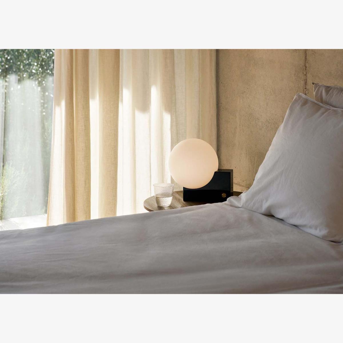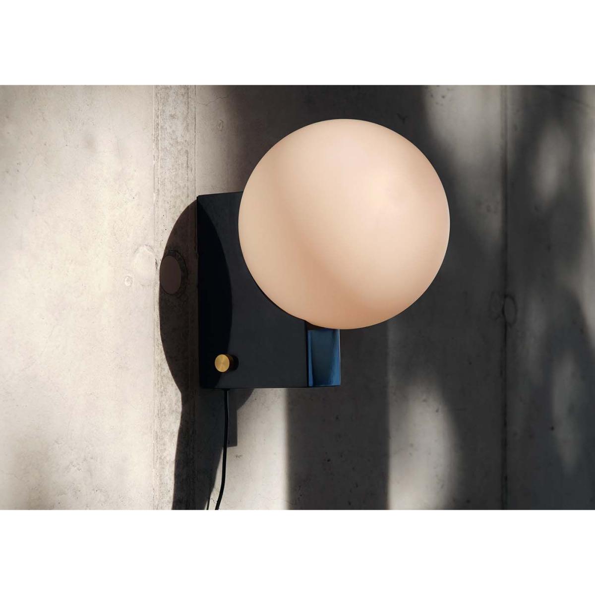 Equally suited to the wall or table, the Journey Wall and Table Lamp was designed by Signe Hytte for &Tradition. Denoted by its cubic base and curved opal shade, the Journey lamp exhibits an interplay between solid and translucent forms. With its sleek and geometrically playful character, the lamp is a visually striking yet functional addition to any room.