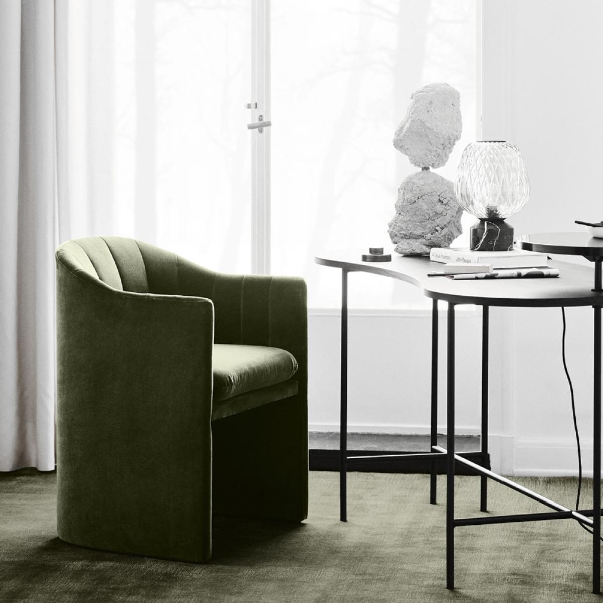 I love the &Tradition Loafer SC24 in velvet because it offers a blend of comfort and contemporary style that works well in both modern and eclectic interiors. Its velvet fabric adds a sense of luxury and softness, making it a great choice for more refined dining spaces or even casual settings. The green tone is versatile and pairs beautifully with neutral palettes or can be a statement piece in a more colour-driven scheme. When styling, consider pairing it with warm woods or metallic accents to enhance its rich fabric, and keep other furniture and accessories minimalist to let the chair stand out. It’s practical for everyday dining thanks to its durable velvet fabric, but also works well in lounge or reading nooks where comfort is key.