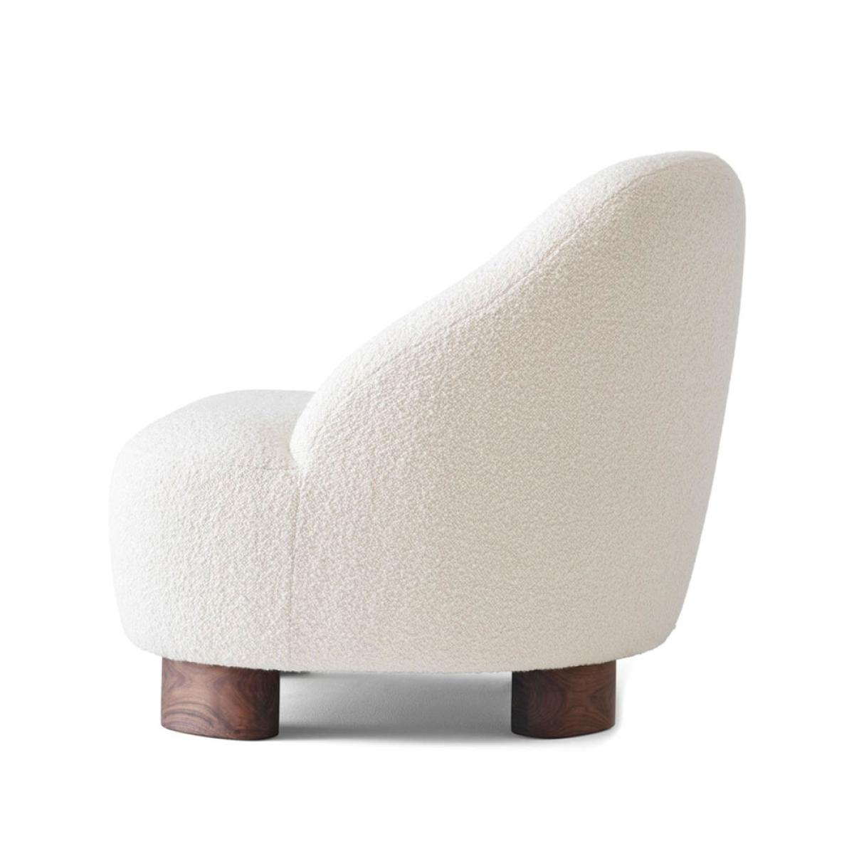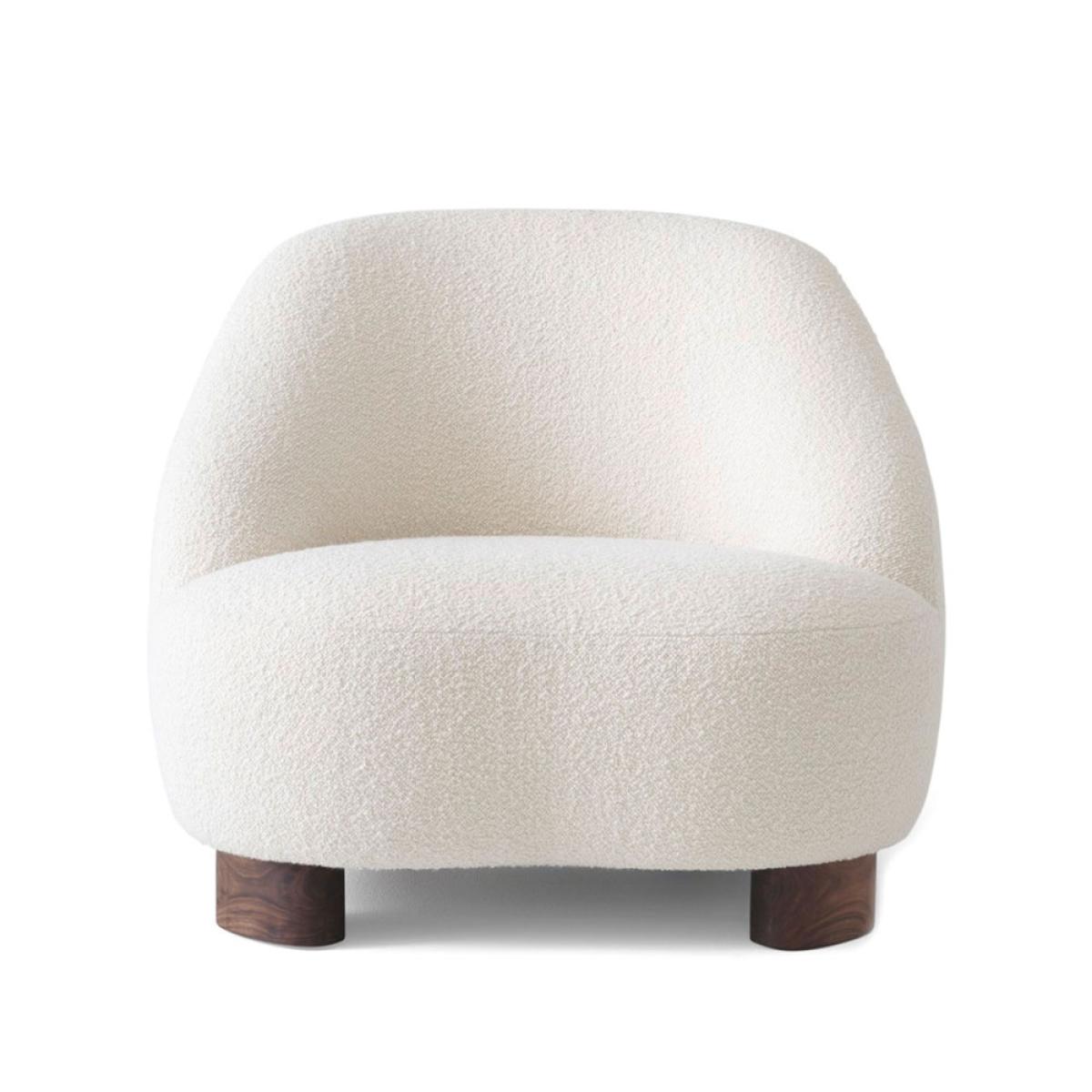 I love this little armchair for its clean, sculptural silhouette that works well in both modern and mid-century inspired interiors. The white-walnut legs add warmth and contrast, making it versatile enough to work as a statement piece or a subtle addition to a neutral palette. It’s ideal for creating a cosy nook or popping into a living room corner, guest room, or even a bedroom. For styling, pair it with textured cushions or a soft throw to enhance its inviting quality, or place it alongside a small side table for a practical yet polished look. Its understated design makes it easy to incorporate into various schemes, from Scandinavian minimalism to eclectic boho, making it a great go-to accent piece.