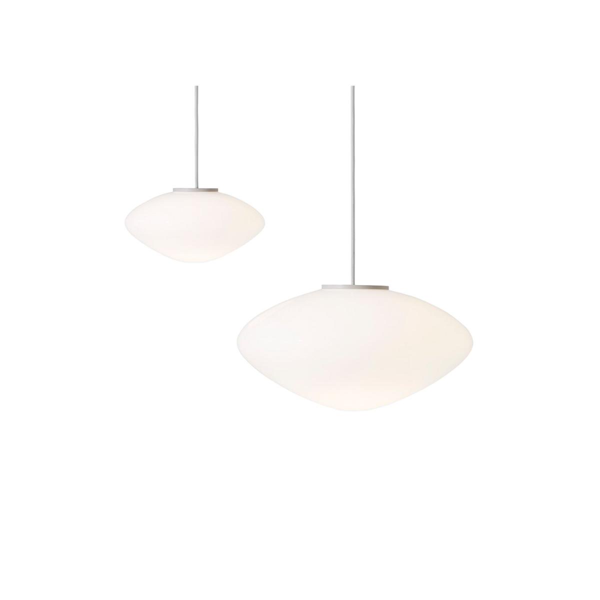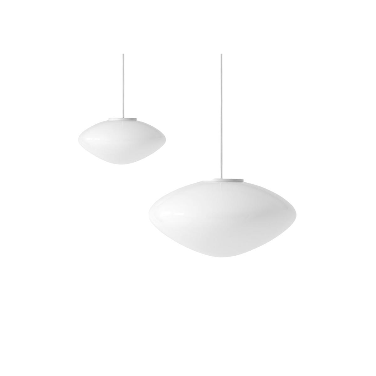Mist is inspired by the warm, diffused light of morning rays shining through the haze, offering a modern take on the classic globe light silhouette. Crafted from mouth-blown opal glass with white coated aluminium details and a textile cord, the Mist pendant lamp is available in two sizes.