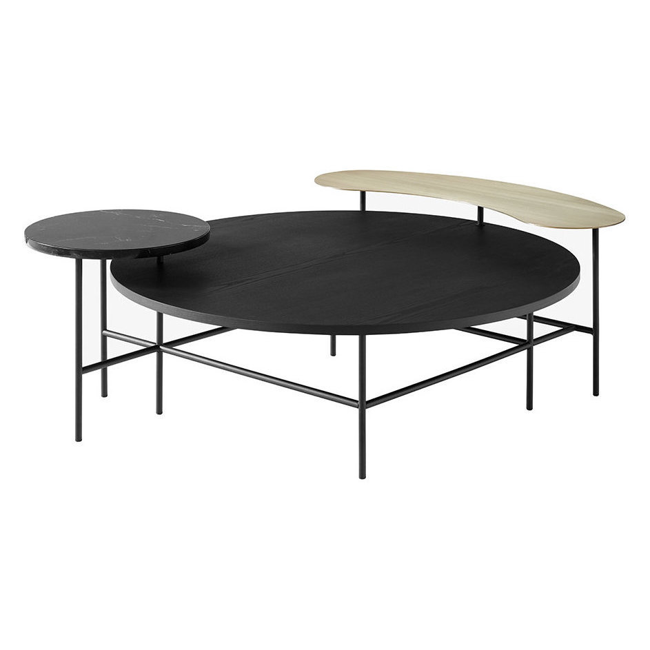 Create a style statement in your living space with the Palette coffee table from &Tradition. Designed by Jaime Hayon, and inspired by Alexander Calder’s kinetic sculptures, it combines a series of multi-tiered tables of varying shapes, sizes, colours and materials. This coffee table features a base made from welded and powder coated steel tubes, with a table top made from laser cut stain polished brass, polished marble and a choice of stained ash or walnut veneer.