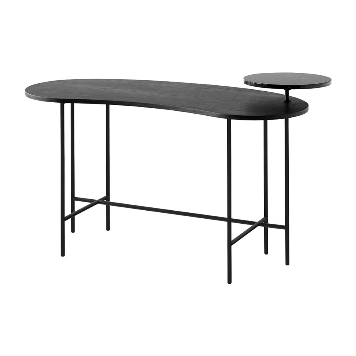 Work in style with the Palette desk from & Tradition. Designed by Jaime Hayon, and inspired by Alexander Calder's kinetic sculptures, it combines a series of multi-tiered tables of varying shapes, sizes, colours and materials. This modern desk features a base made from welded and powder coated steel tubes, with a table top made from laser cut polished marble or brass and a choice of stained ash or walnut veneer. Key features: * Desk * Material: Nero Marqina marble, black lacquered ash * Frame material: powder coated steel * Dimensions: W146xD62xH83cm * Weight: 22kg * Fitted with plastic gliders * Designed by Jaime Hayon