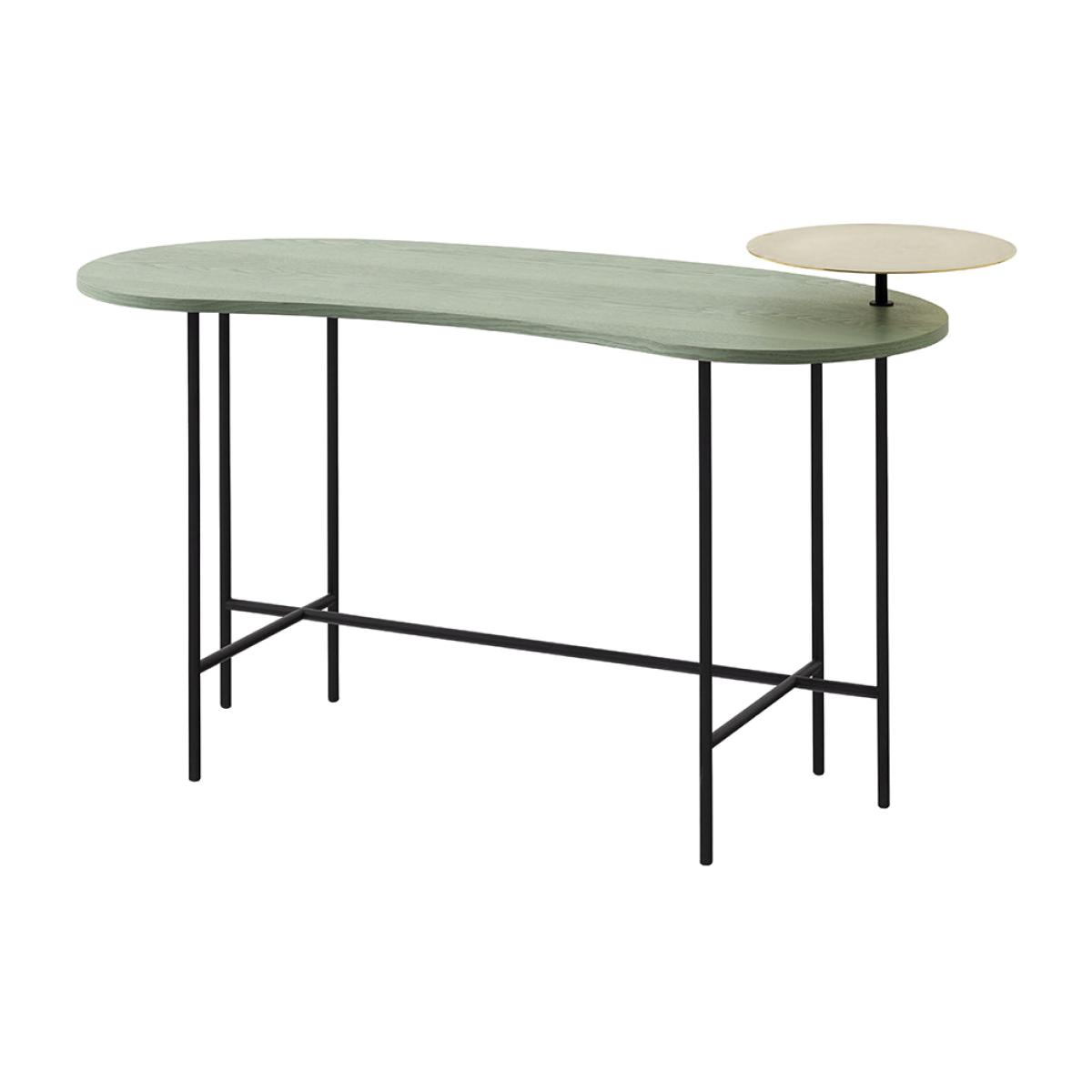 Work in style with the Palette desk from & Tradition. Designed by Jaime Hayon, and inspired by Alexander Calder's kinetic sculptures, it combines a series of multi-tiered tables of varying shapes, sizes, colours and materials. This modern desk features a base made from welded and powder coated steel tubes, with a table top made from laser cut polished marble or brass and a choice of stained ash or walnut veneer. Key features: * Desk * Material: brass & grey green lacquered ash * Frame material: powder coated steel * Dimensions: W146xD62xH83cm * Weight: 22kg * Fitted with plastic gliders * Designed by Jaime Hayon