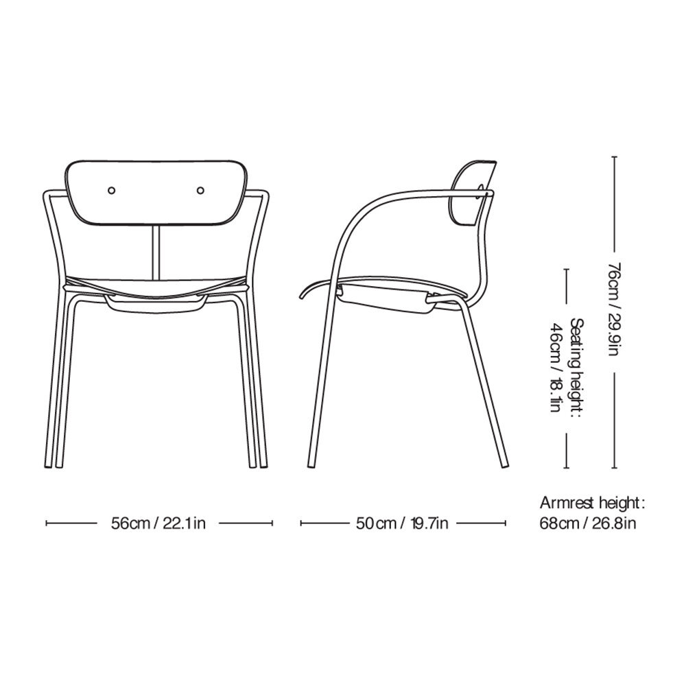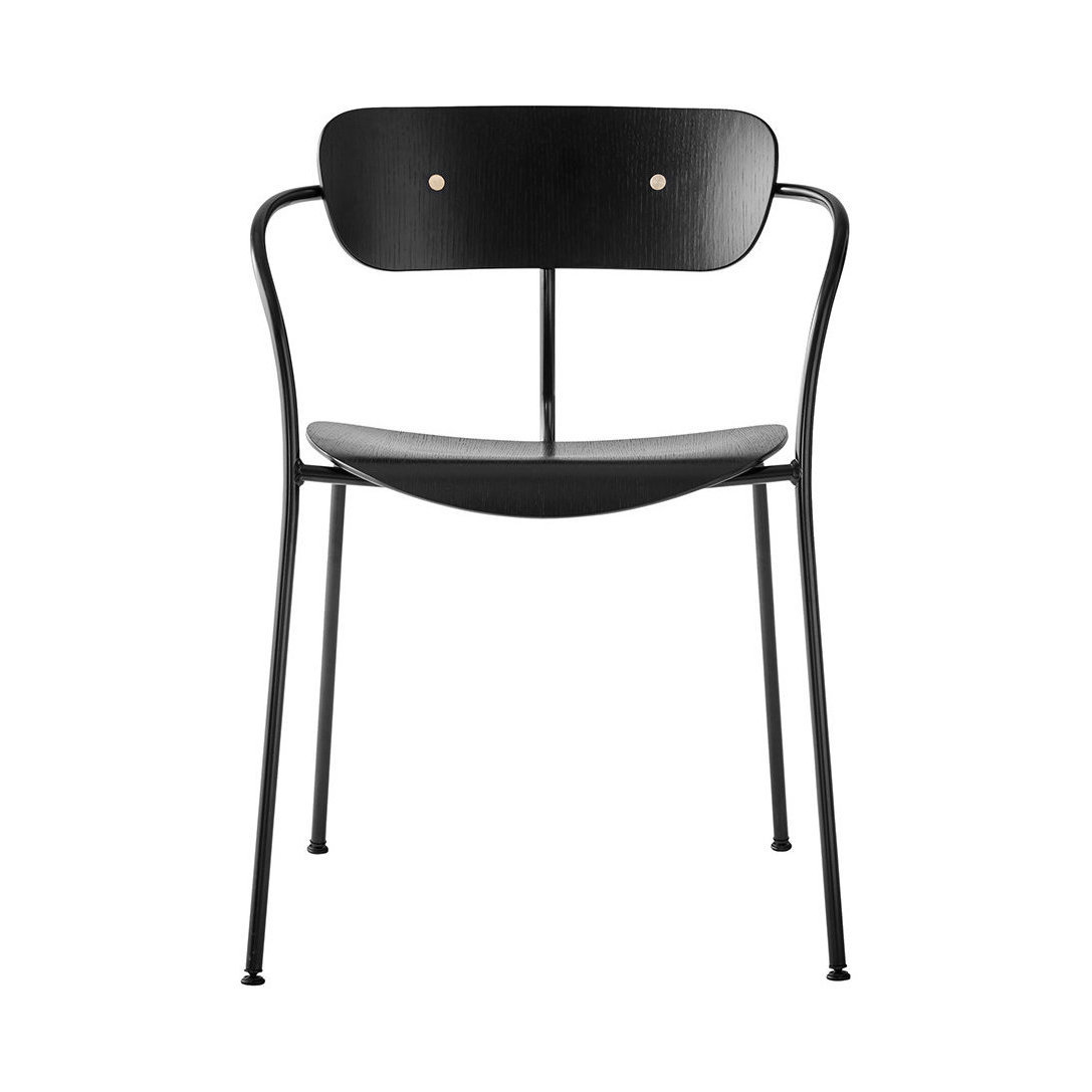 Take a seat in style and comfort thanks to the Pavilion chair designed by Anderssen & Voll. With curvaceous lines in the oak veneer seat and back rest, the steel tube frame contrasts in perfect style. Laid back, it's also stackable making it as practical as it is stylish. Key features: * Material: steel tubes, formpressed veneer * Dimensions: H77.5xW56xD52.5cm * Armrest height: 76cm * Seating height: 46cm * Weight: 5.4kg * Designed by Anderssen & Voll * Black lacquered oak with black powder coated steel frame * With plastic gliders