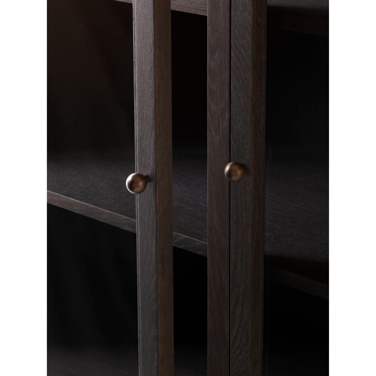 I love this display cabinet because of its clean lines and dark stained oak finish, which gives it a refined, timeless appeal. It works particularly well in both contemporary and mid-century interiors, adding warmth and a subtle sophistication. Practical styling tips include grouping items of varying heights and textures behind the glass to create visual interest, or using it to showcase a curated collection of ceramics, books or decorative objects. Its size makes it versatile for living rooms, kitchens or dining areas, and pairing it with lighter or contrasting furniture can really help it to stand out without overwhelming the space.