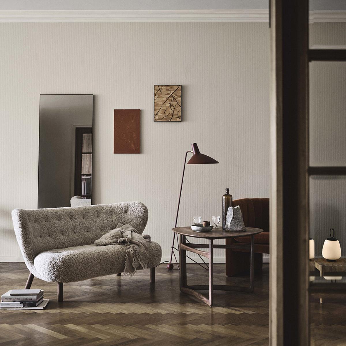 I love this tripod floor lamp for its bold, sculptural presence and rich maroon finish, which adds a warm, contemporary edge to a variety of interiors. It works particularly well in modern or eclectic settings, where it can serve as a statement piece. To style it effectively, place it beside a reading nook or a statement armchair to create a cosy, inviting corner. Pairing it with natural textures - like the plush armchair here - enhances its visual impact, and it looks striking in both understated and layered spaces. Keep surrounding accessories minimal to let the lamp’s colour and shape stand out, making it a functional design feature rather than just a light source.