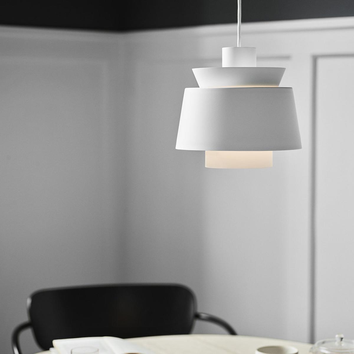 I love the &Tradition Utzon pendant for its sleek, minimalist design that effortlessly blends modern Scandinavian style with a subtle sculptural element. Its clean white finish makes it quite versatile, working well in a variety of interiors from contemporary kitchens and dining areas to stylish home offices. For practical styling tips, hang it at different heights to create visual interest over a dining table or kitchen island, or cluster a few at varying levels for a more dynamic look. Its understated form means it pairs beautifully with both muted colour palettes and bolder decor accents, making it a reliable choice for adding a touch of refined simplicity to any space.