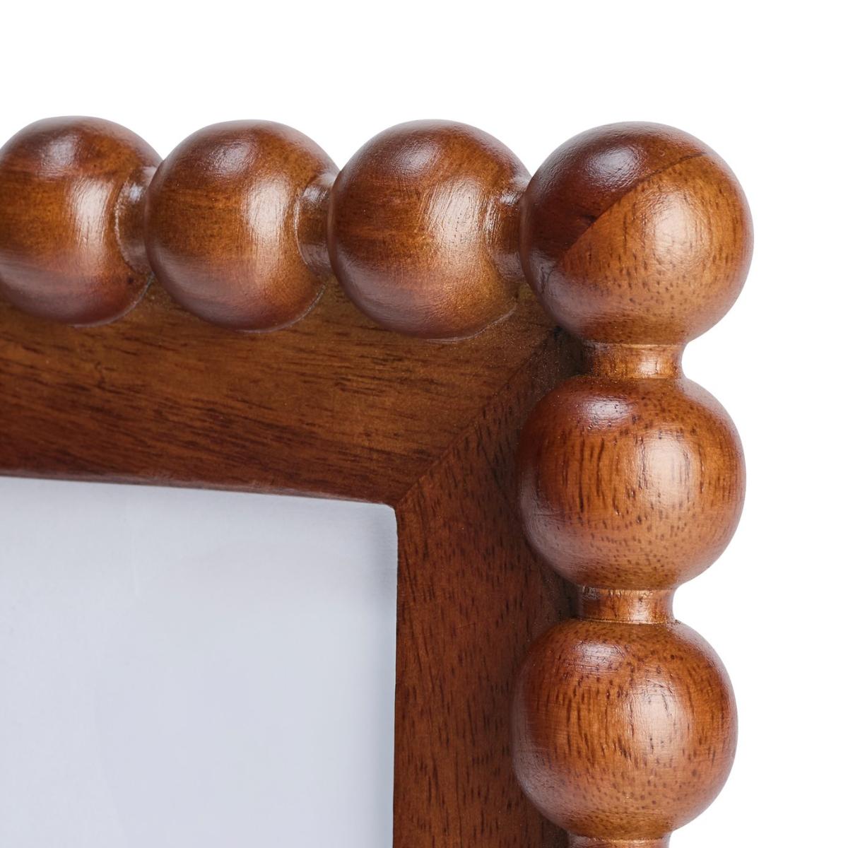 Bring home a touch of whimsy with this square bobble frame. Where modern meets arts and crafts style. Crafted in mango wood with a glossy walnut finish, it's perfect for making a favourite photo or artwork stand out. For photo size: 12.7x12.7/5x5inch. Size H17.75, W17.75, D2.5cm. Free standing. Wall mounted. Product can be free standing and wall mounted. Wood frame. Set of 1 frames. By choosing FSC certified products, you are supporting responsible management of the world's forests.