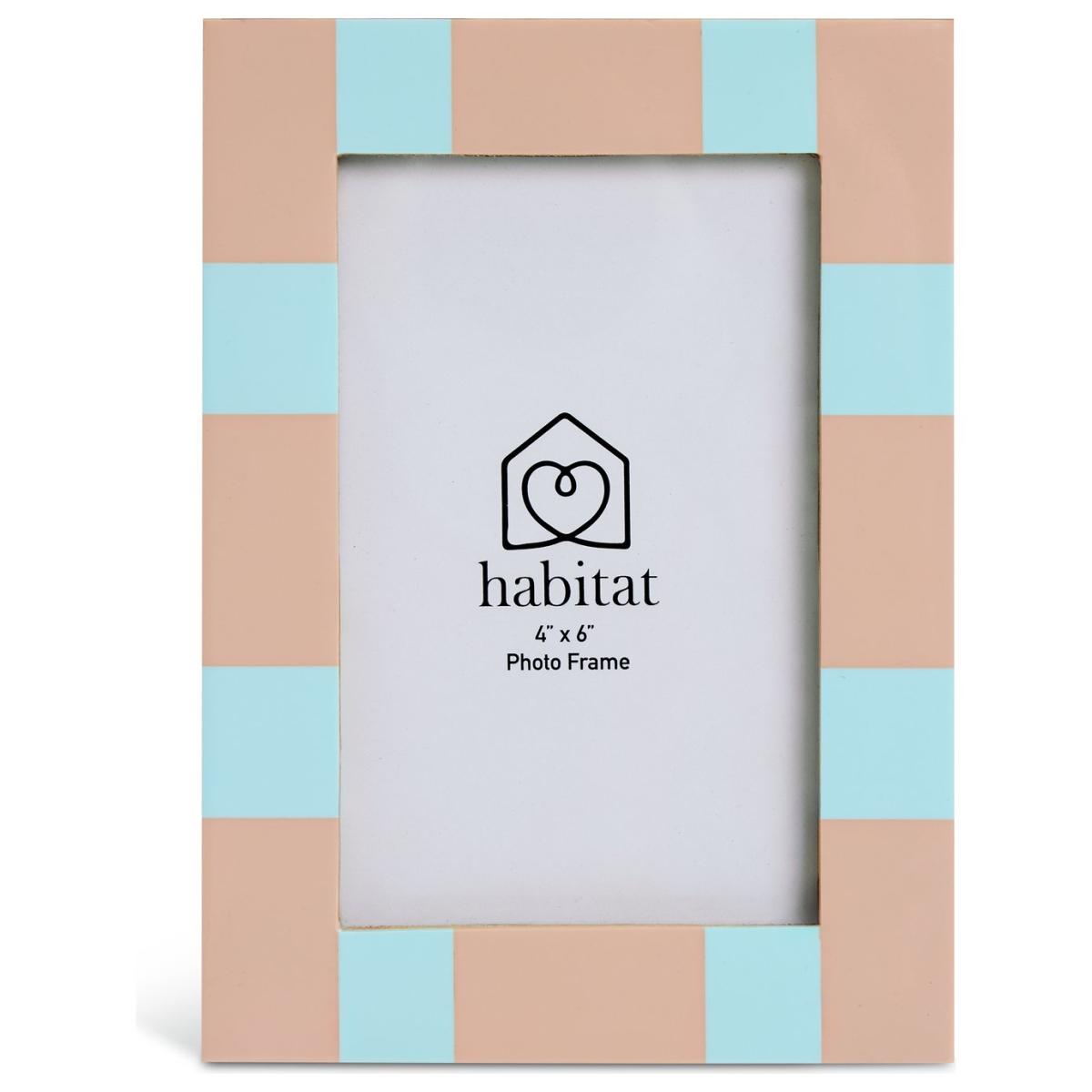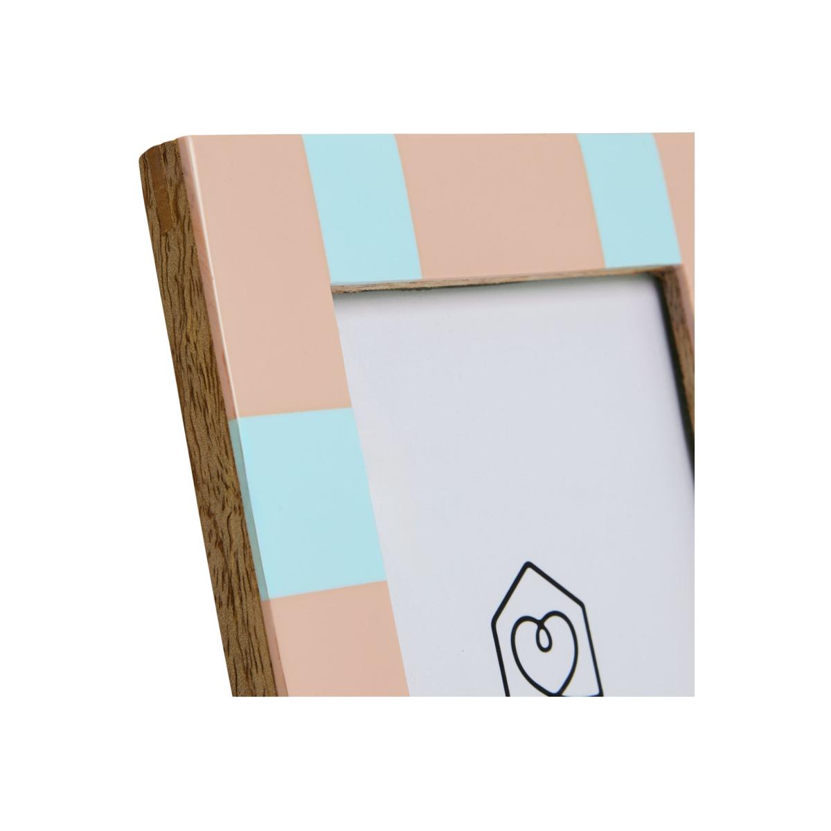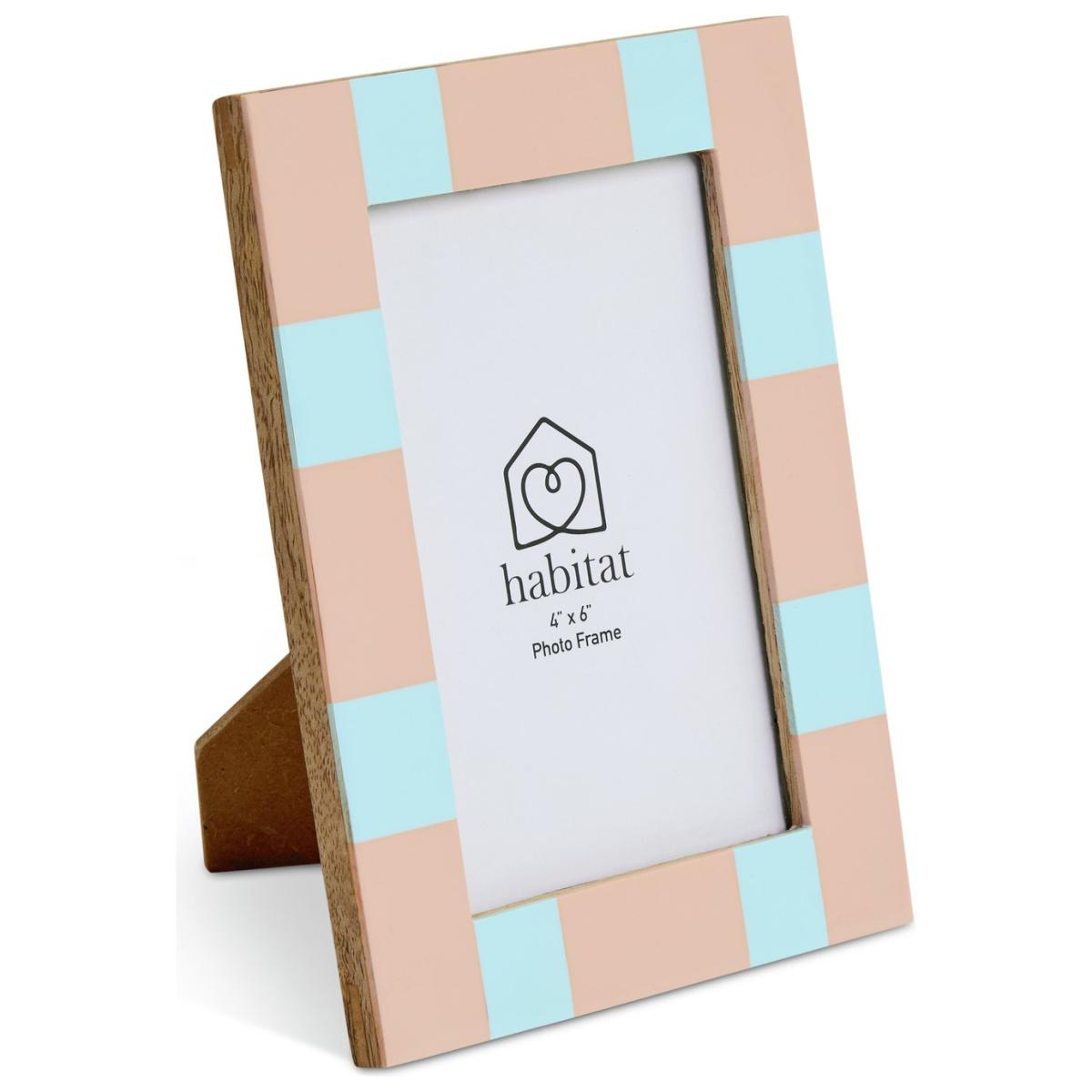 Add a fun focal point to your mantle with this 4x6" picture frame. Made from mango wood with a pink and blue checked pattern, it's a colourful way to put photos on display. For photo size: 10.16x10.16cm/ 4x6 inches. Size H21.5, W16.5, D1.8cm. Free standing. Mango wood frame. FSC certified meaning the materials used for this product are responsibly sourced.