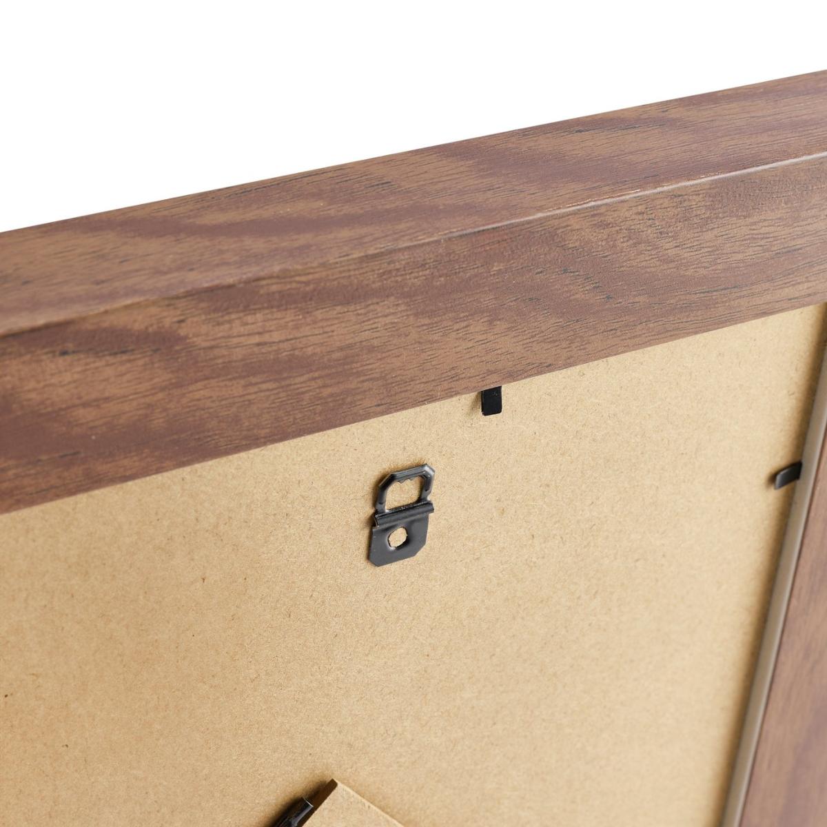 Capture your favourite memories in this rectangular picture frame. Features a bevelled design crafted in richly grained walnut-stained wood. Display your way. Pop it on a side table, or hang it on a wall, the choice is yours. For photo size: 8x10inch/20.3x25.4cm. Size H32.4, W27.3, D3cm. Product can be free standing and wall mounted. Wood frame. Set of 1 frames.