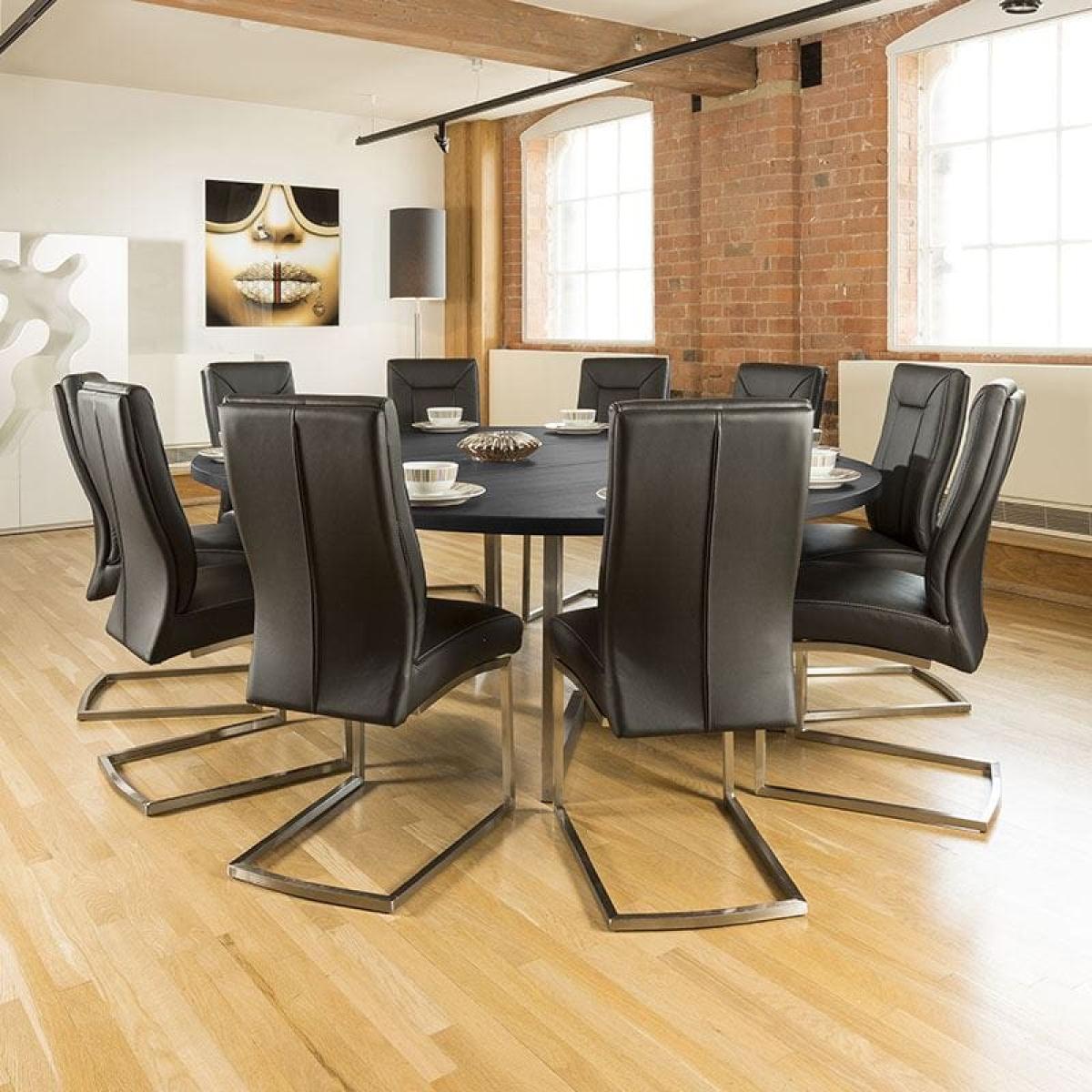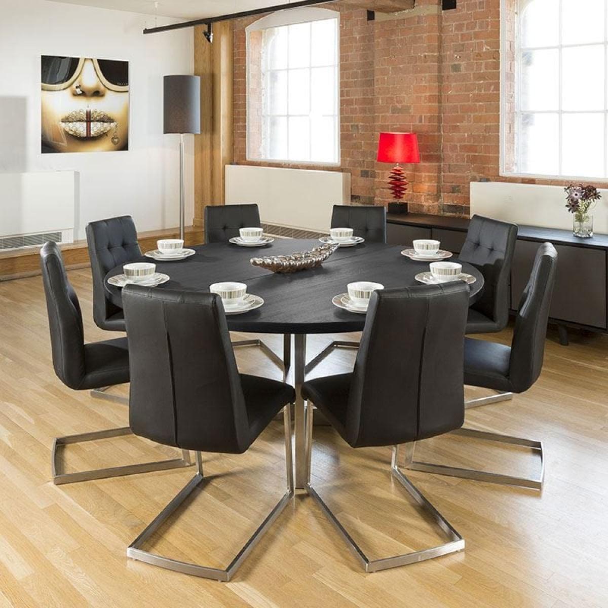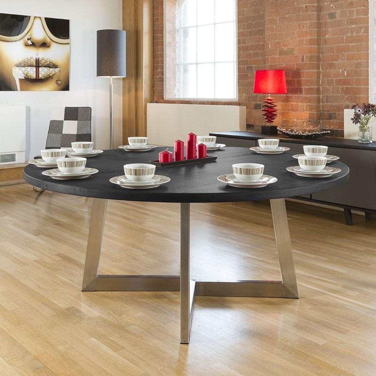 #KK4 180-230cm Extending Luxury Round / Oval Dining Table Oak Black