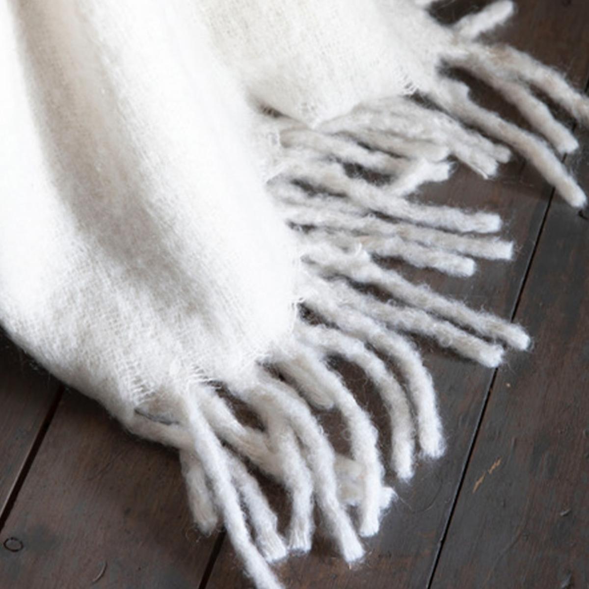 This fluffy and warm luxuriously soft throw/blanket is hand woven in a delicate mix of mohair and wool. Wrap yourself up in one and feel the soft warmth or keep it as a wonderful splash of color on your sofa or your favorite chair.