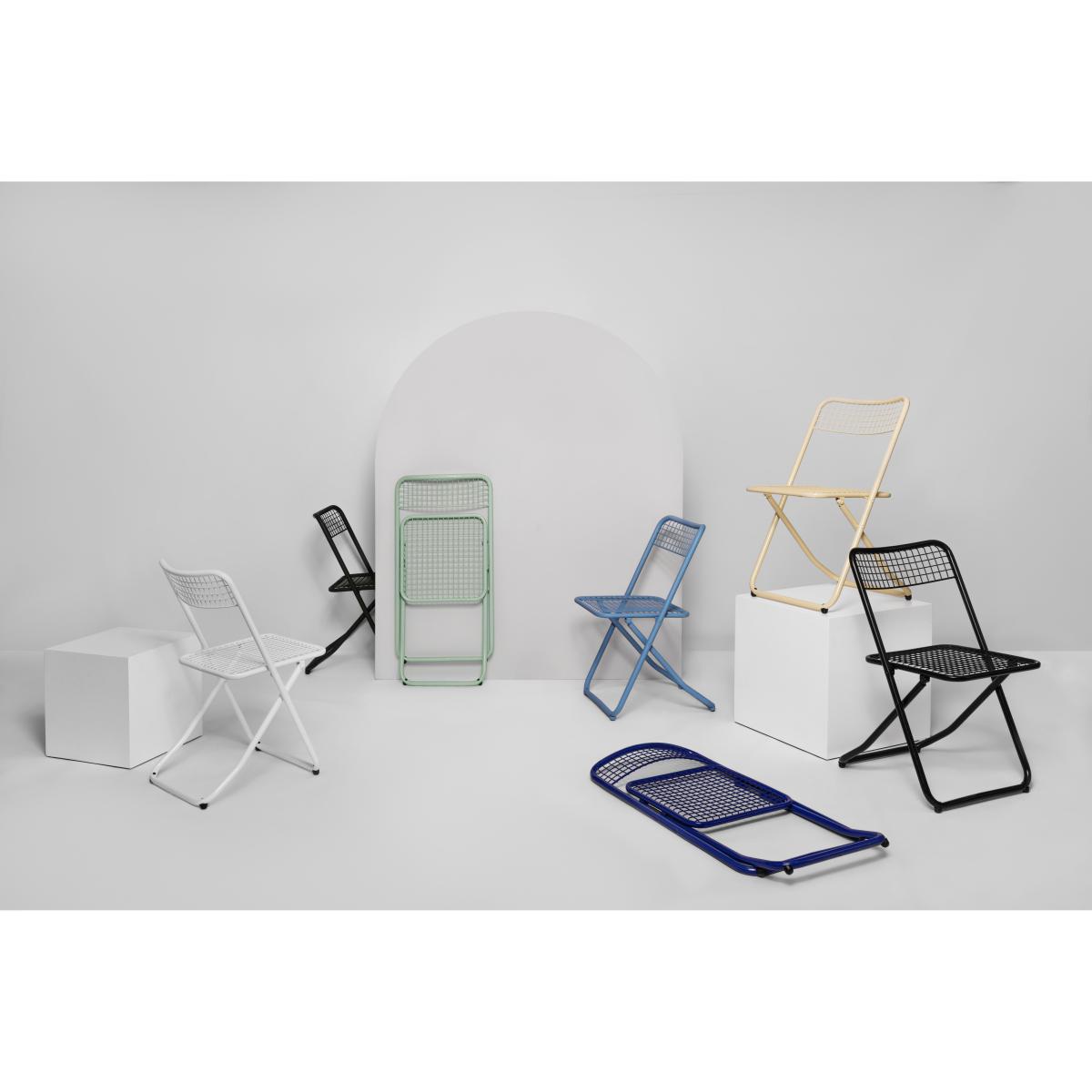 A reinvented icon. Based in Valencia in Spain, the school furniture maker, Frederico Giner has been equipping classroom the world over for decades. In collaboration with the Spanish brand, Houtique, Frederico Giner has brought out the 085 chair from his archives: an icon of 70s/80s design. Deliciously vintage, this metal mesh folding chair metal is now available in a range of modern colours. The criss-cross metal rods form repeated, extremely graphical, geometric patterns. Airy and clean, this mesh chair fits perfectly into the current industrial trend. Sturdy and light, the 085 chair can be stored easily once folded.