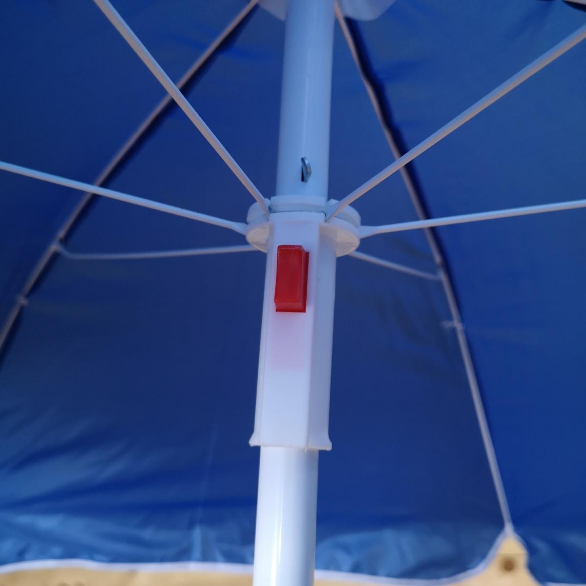 1.4m diameter parasol umbrella with an adjustable pole to 1.6m. The blue parasol cover provides sun protection, making it perfect for those hot beach days! Sturdy construction with a manual lift mechanism. Lightweight and portable Spike end on the pole for fixing into the ground. Relax in the shade on a bright sunny day with this lovely parasol umbrella.