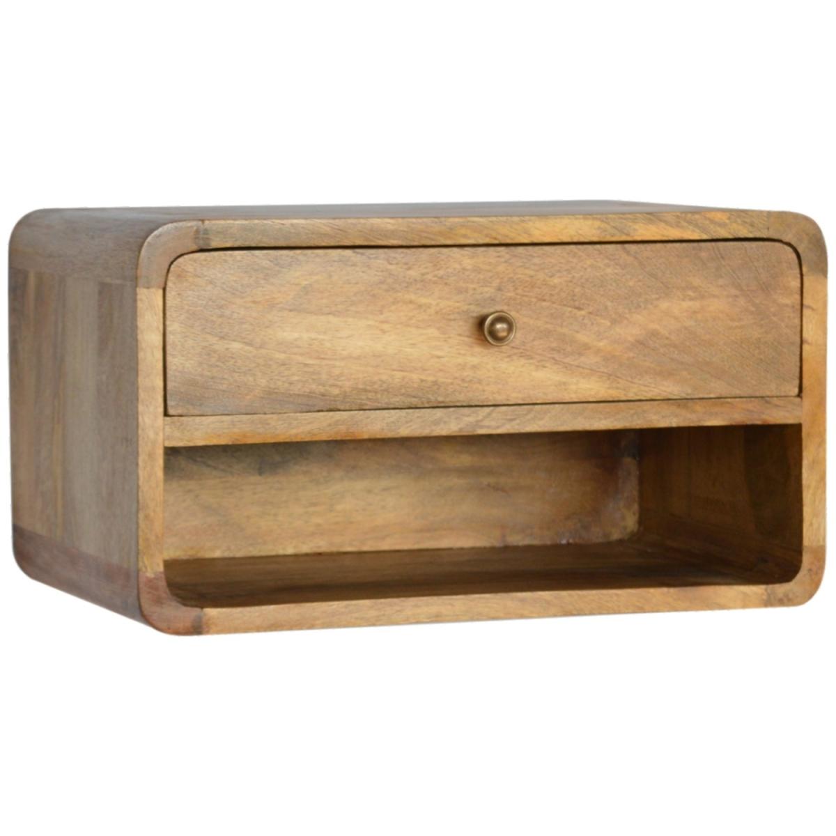 1 Drawer Curved Oak-ish Wall Mounted Bedside Table with Open Slot - Brown
