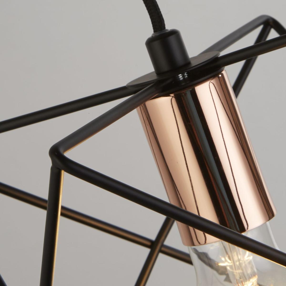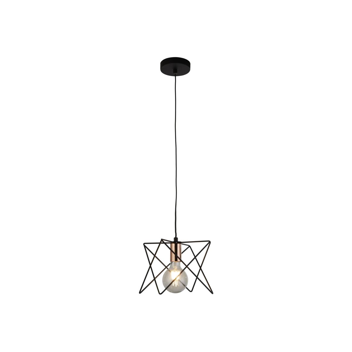 This hanging light is a stylish choice that combines industrial edge with modern minimalism, thanks to its black frame and coopper accent. It works particularly well in contemporary or urban interiors, adding a touch of pared-back sophistication. I love how it can be a focal point above a dining table or in a kitchen, and it pairs nicely with exposed materials like brick or concrete. To style it effectively, consider using warm-toned bulbs to complement the coopper detail or keep the look sleek with a clear bulb for an understated vibe. Its design lends itself to both single statement pieces and multi-light arrangements for a bolder impact.