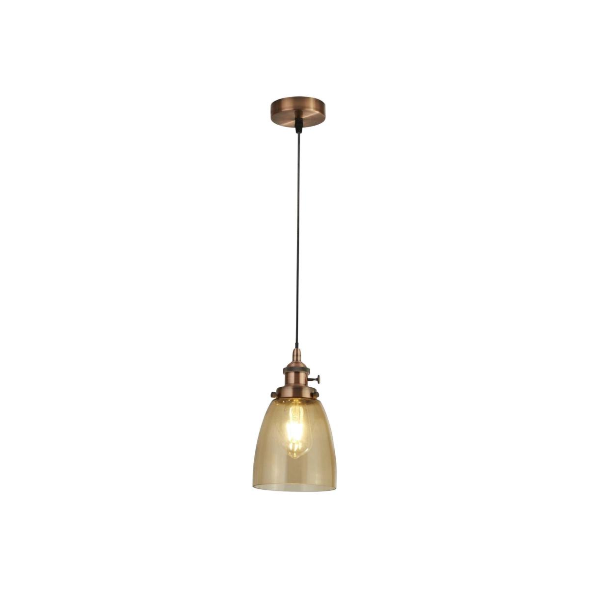 1 Light Pendant Antique Copper, Amber Glass, E27 - Antique Copper