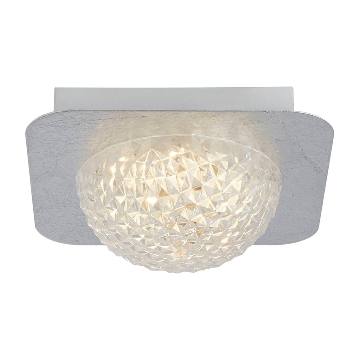 A unique and modern flush light, the CELESTIA features a rouded square metal base finished in stunning silver leaf. The central clear acrylic half sphere has a pretty, cut crystal design that casts the light out from the integrated LED in a warm white patterned glow. Ideal for halls, living rooms and porches with low ceilings, it can also be controlled with a dimmer switch.