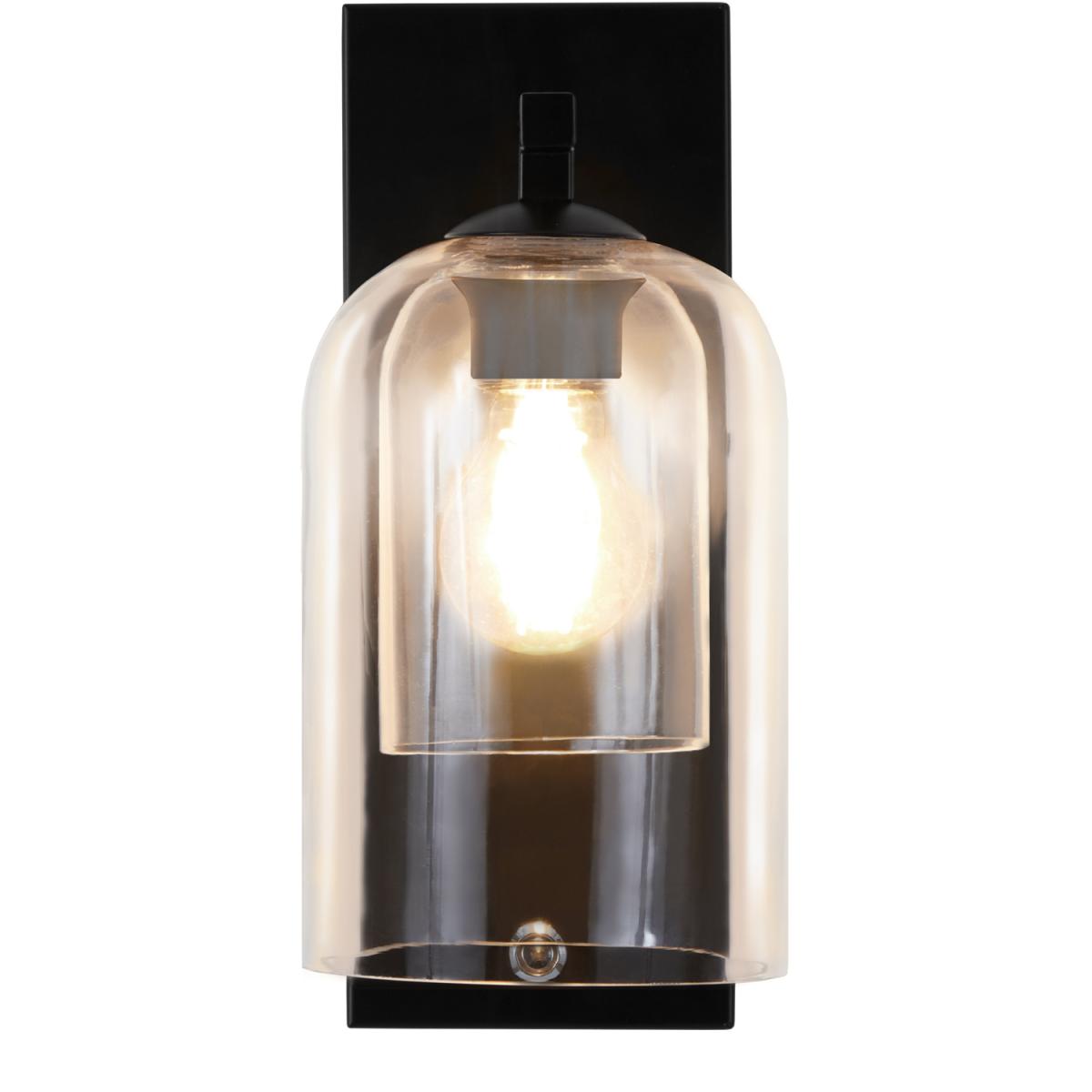 1 - Light Wall Sconce with Glass Dome Shade, Black - Black