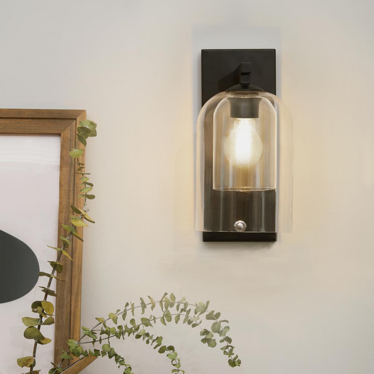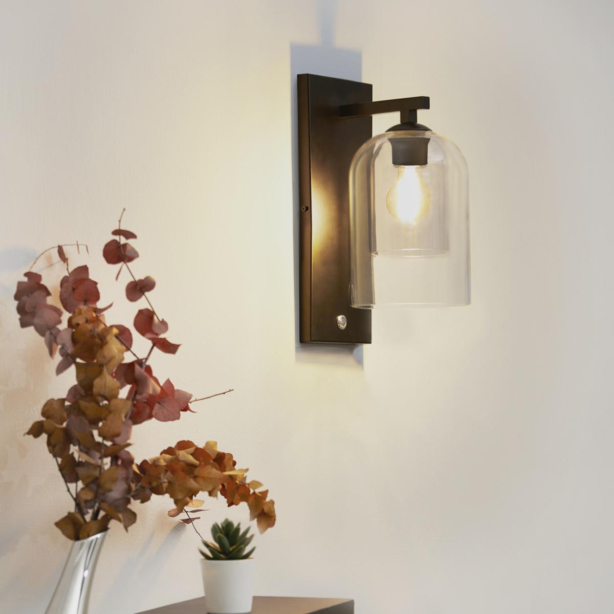 This wall light with its clear glass dome shade and black finish is a versatile piece that adds a modern, industrial touch to various interiors. I love how it combines simplicity with a bit of edge-perfect in both contemporary and rustic spaces. It works particularly well in hallways, bedrooms, or even over a mirror, where its unobtrusive design allows it to complement rather than compete with your decor. For styling tips, consider pairing it with vintage Edison bulbs for an added warm glow or using different finishes in a layered lighting scheme for more visual interest. Keep the surrounding wall neutral or in contrasting matte tones to really make the details stand out.