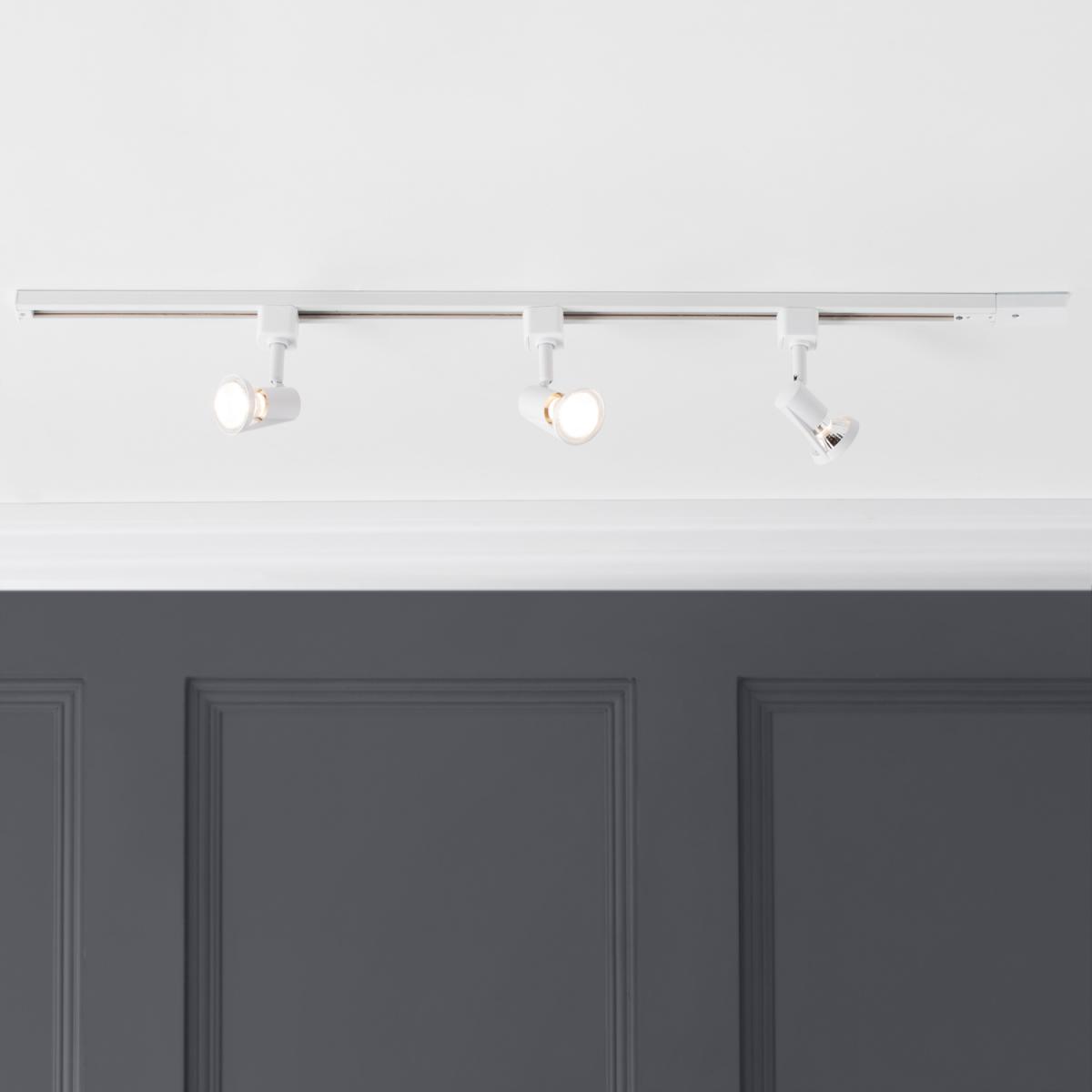1 metre Track Light Kit with Harlem Spotlight Heads and LED Bulbs - White / 3