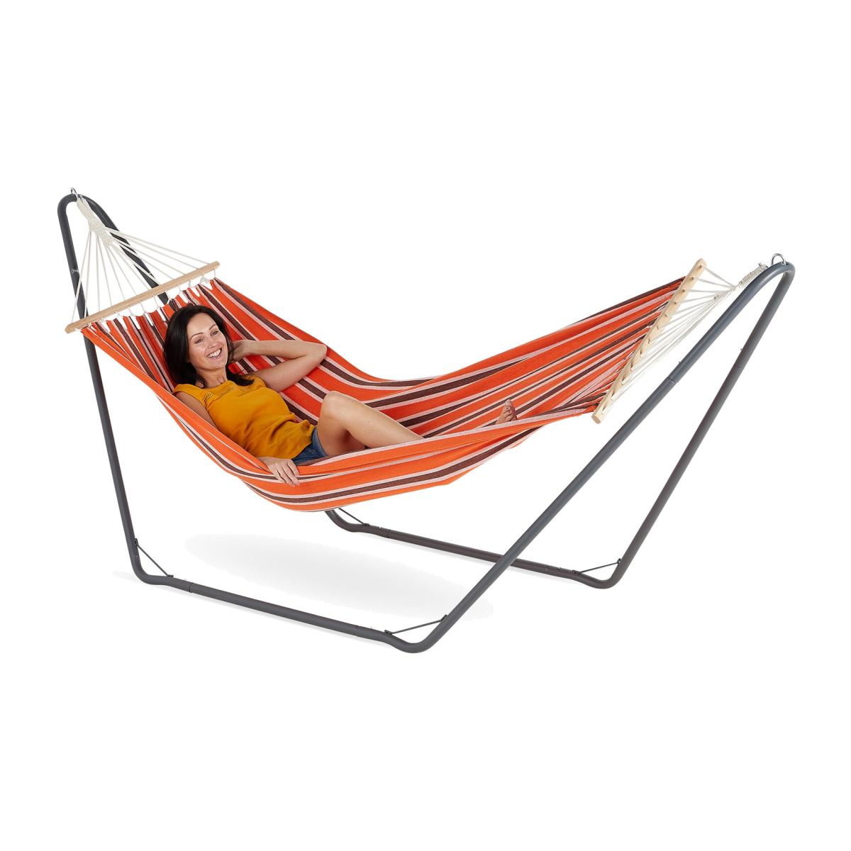 This outdoor hammock with stand, especially in that bold orange, is a great way to introduce colour and laid-back charm to garden or conservatory spaces. I love its striped design for adding a playful yet contemporary feel, making it a versatile statement piece. It works well in casual, boho-inspired interiors or garden setups, and can even complement modern patio furniture with its minimal frame. Practical styling tips include pairing it with neutral cushions or throws for comfort, and placing it near lush greenery or floral displays for a relaxed vibe. This hammock is perfect for creating a cosy corner where unwinding and enjoying outdoor leisure becomes effortless.