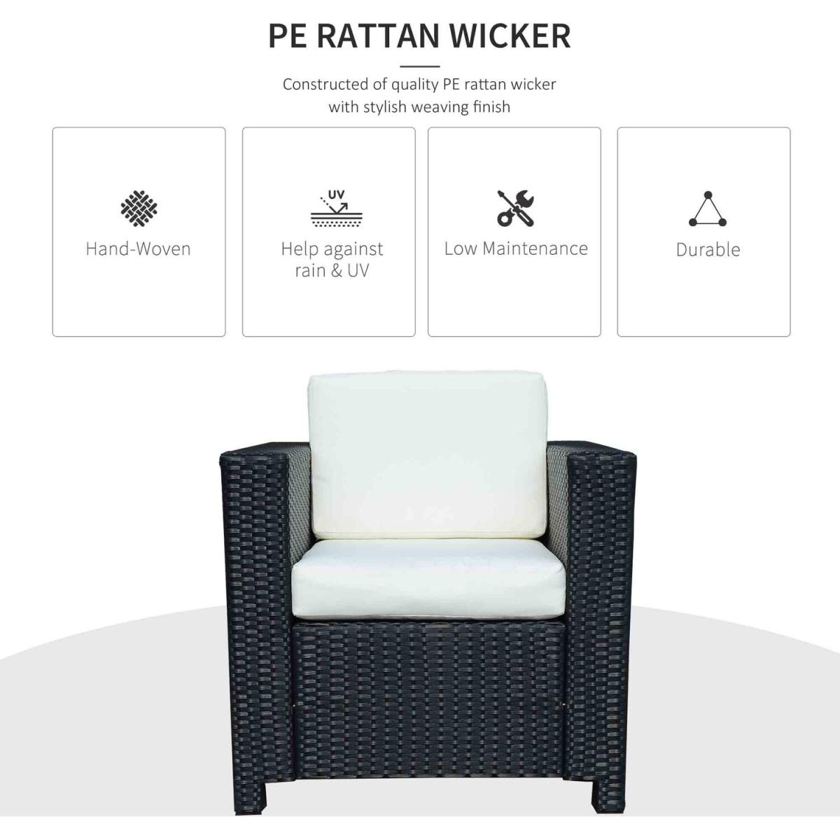 Give yourself the best seat in the garden with this rattan armchair from Outsunny. Using galvanised steel with a powder-coating for the frame to prevent rust and damage outdoors, it is wrapped in wicker rattan in a beautiful grey and brown mix, ensuring it looks good, can be cleaned easily and is a mainstay in your garden furniture. Each thick and plush, as well as being water-resistant and having washable covers, two grey cushions are placed on the front and back for supreme comfort, with this piece finished with a high back and armrests for plenty of support. A great way to sit back and relax in the sun.