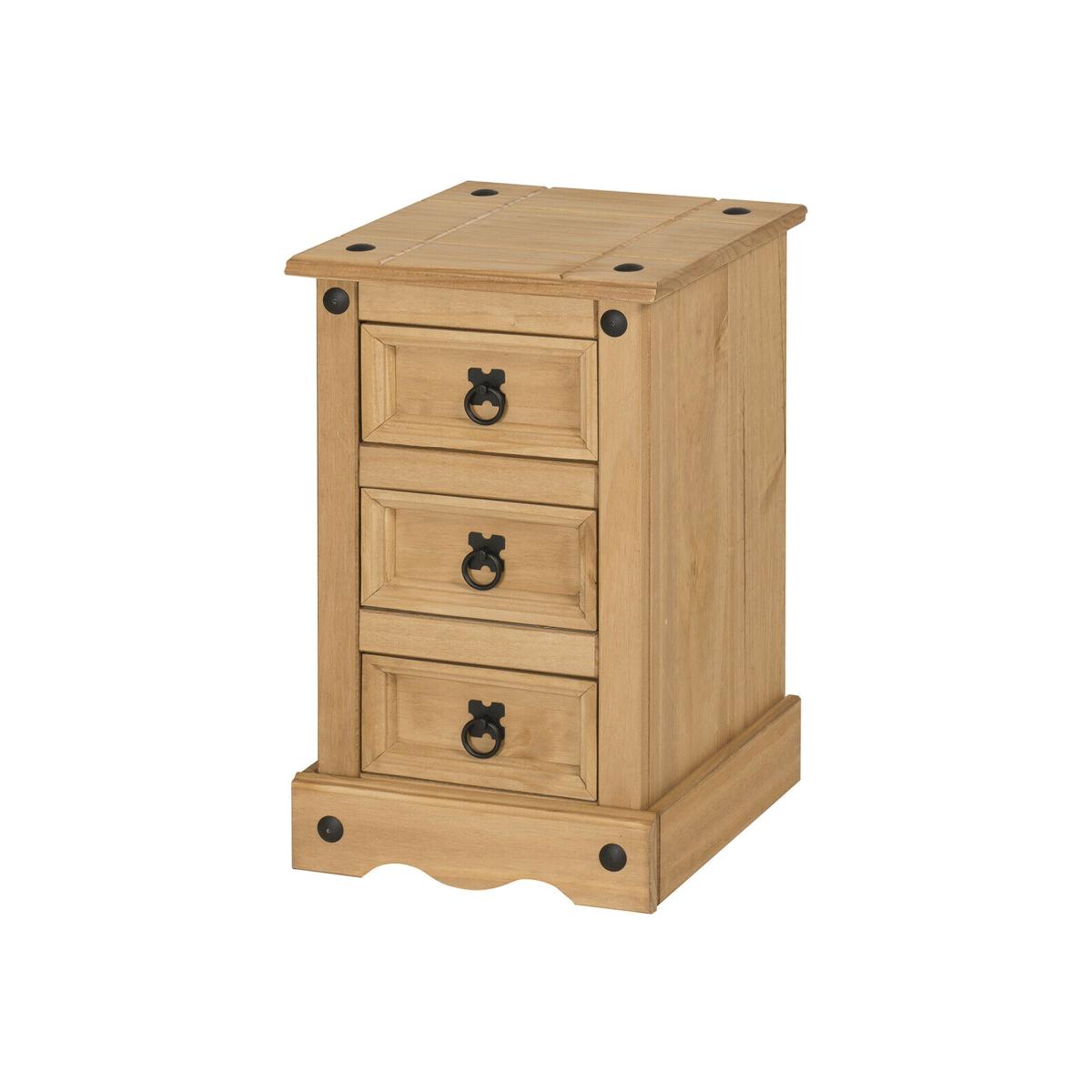 1 x Corona Bedside Cabinet 3 Drawer Table Chest Solid Pine - Antique wax