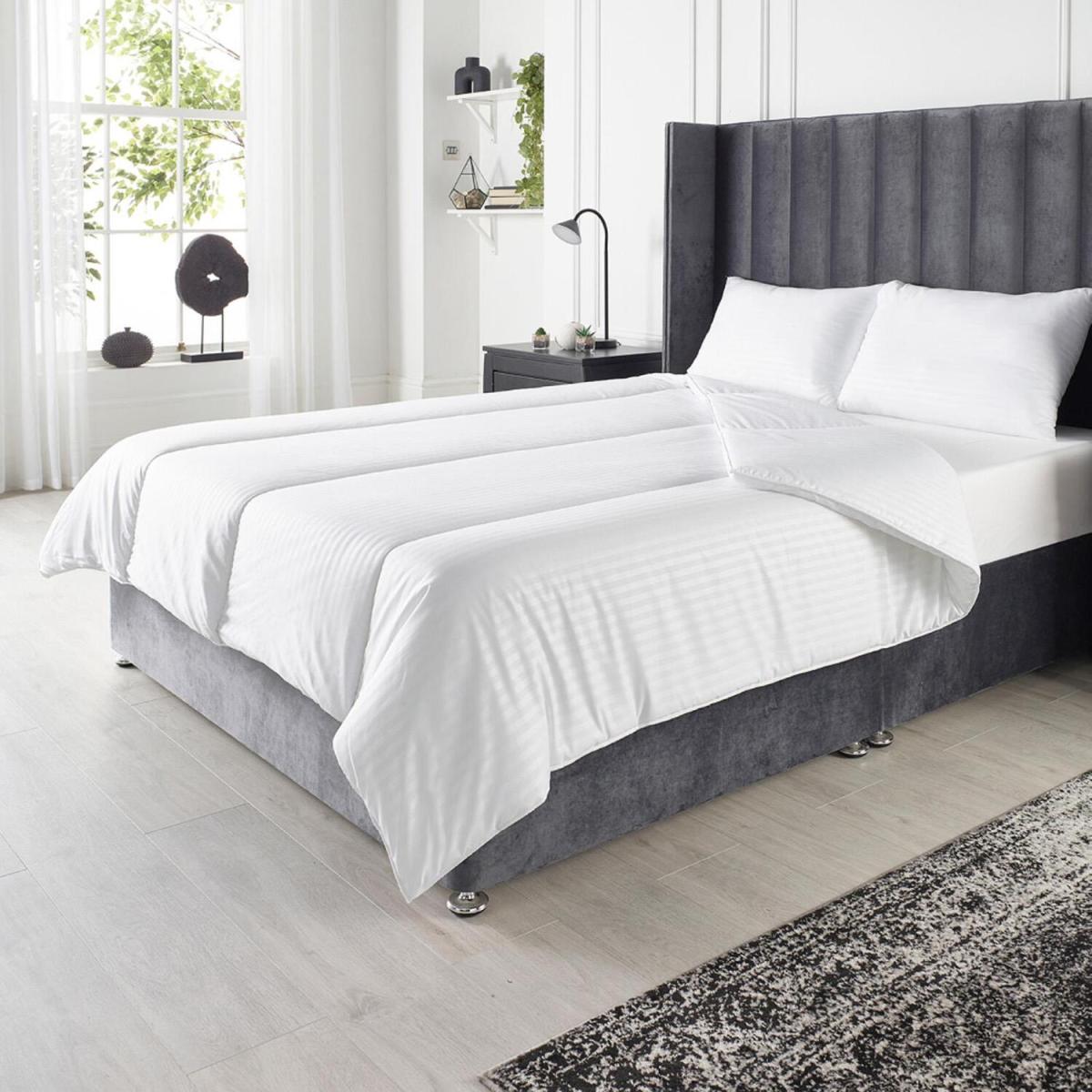 Experience the epitome of luxury and comfort with the OHS Hotel Satin Stripe 10.5 Tog Duvet. Designed for those who appreciate the finer things in life, this duvet exudes opulence with its exquisite embossed stripe microfibre construction. Perfectly suited for all seasons with its 10.5 tog, it offers medium-weight coverage that ensures unparalleled rest and rejuvenation. Dive into its plush filling of soft hollowfibre and indulge in an enhanced sleeping experience every night. Wrapped in a satin stripe cover, this duvet not only promises comfort but also adds a touch of elegance to your bedroom decor, inviting you to immerse yourself in its lushness and sophistication. Elevate your sleep to a new level of luxury with this premium duvet.