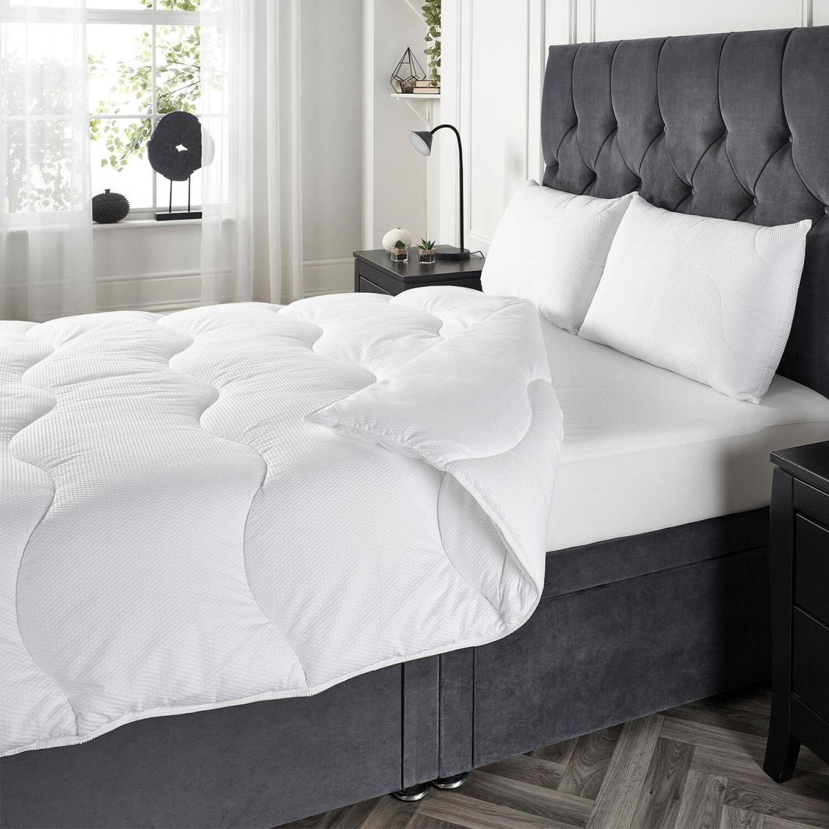 Experience a more restful sleep with this opulent Waffle 10.5 Tog Texture Duvet, a combination of luxury and comfort. Crafted from extremely soft, embossed microfibre fabric, this duvet boasts an eye-catching waffle pattern that adds an extra layer of padded cosiness to this sumptuous bedding. This embossed cover imparts a touch of elegance, offering a look and feel of pure luxury. This duvet is also incredibly easy to maintain, being both machine washable and quick-drying. Upgrade your bedding with this 10.5 Tog Duvet.