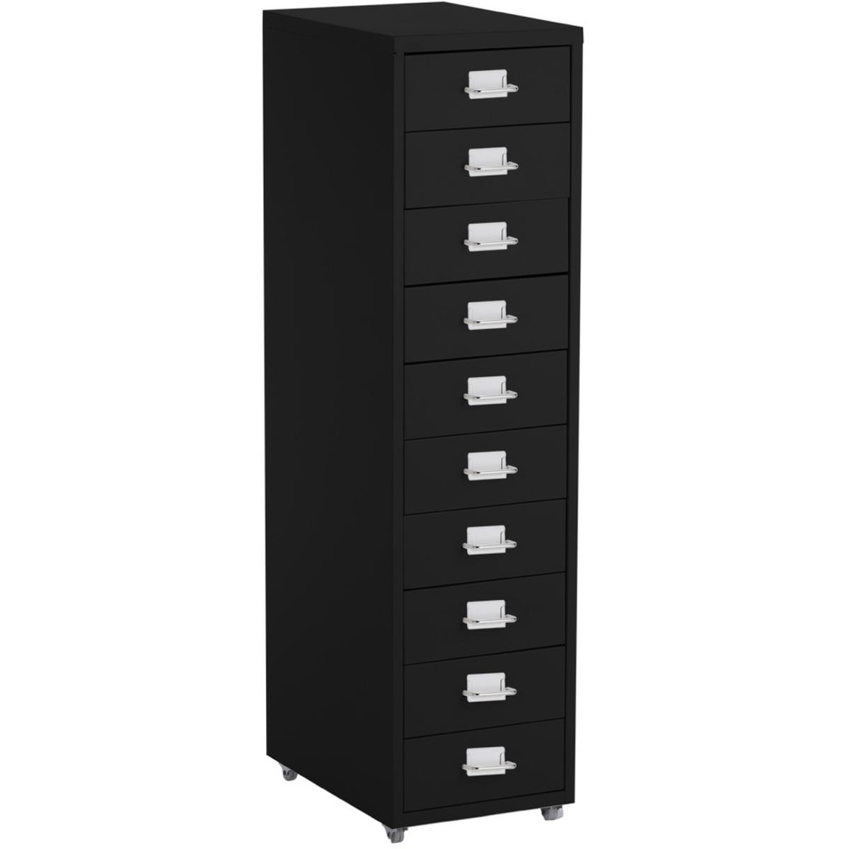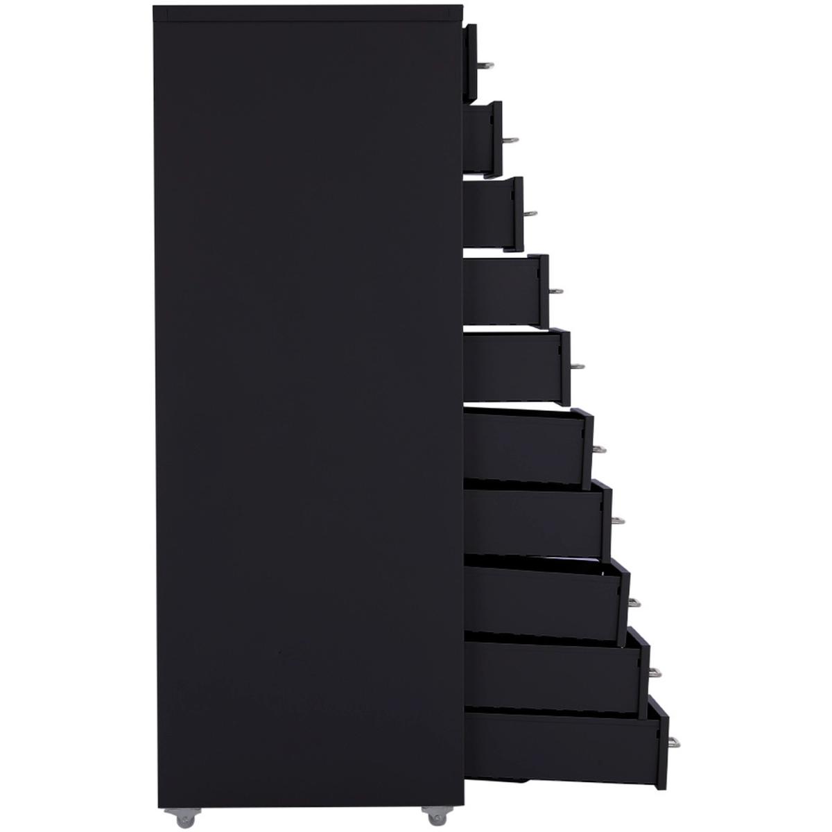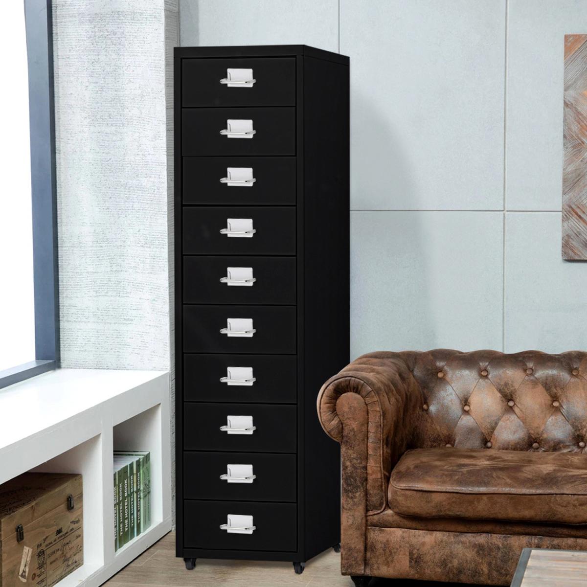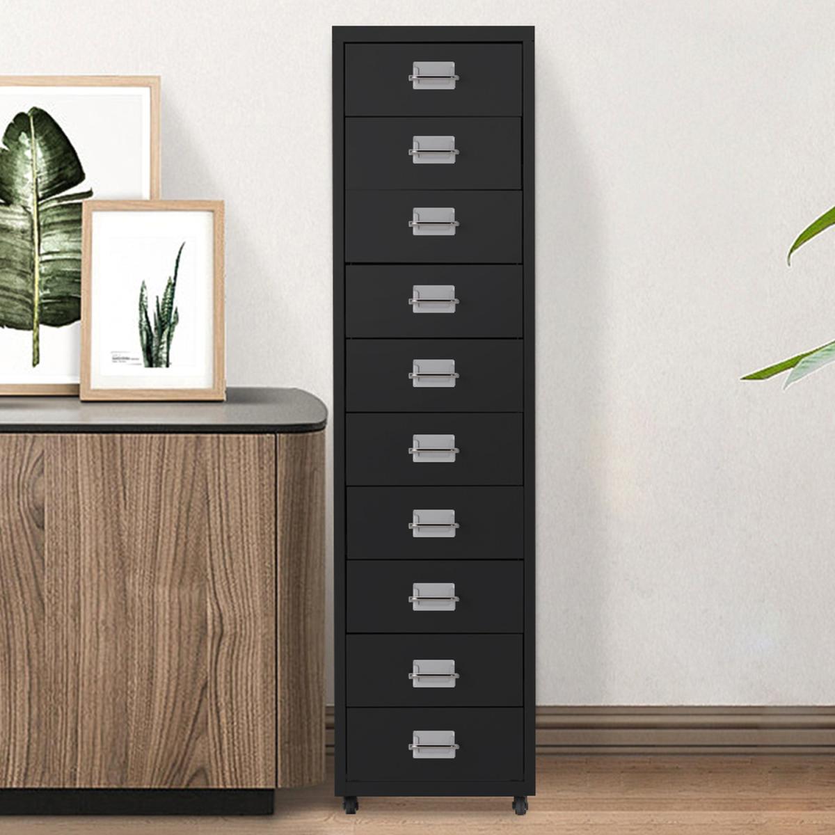10 Drawer Metal Filing Cupboard Storage Cabinet Unit With Castors Home Office - Black
