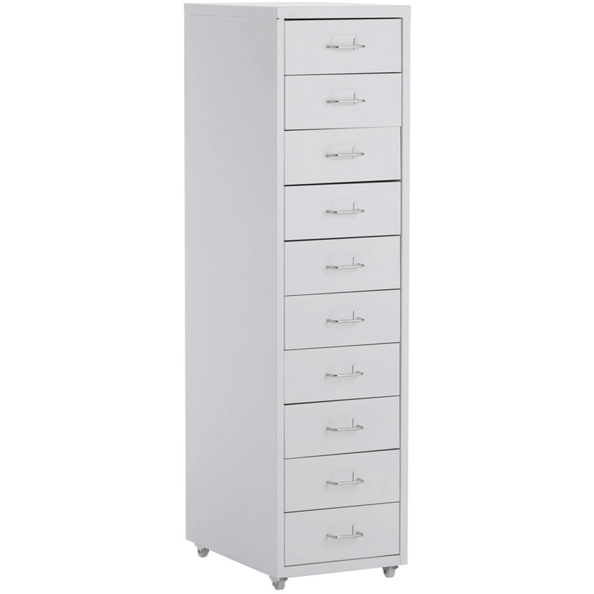 10 Drawer Metal Filing Cupboard Storage Cabinet Unit With Castors Home Office - White